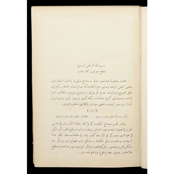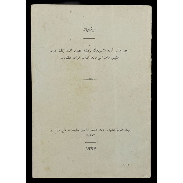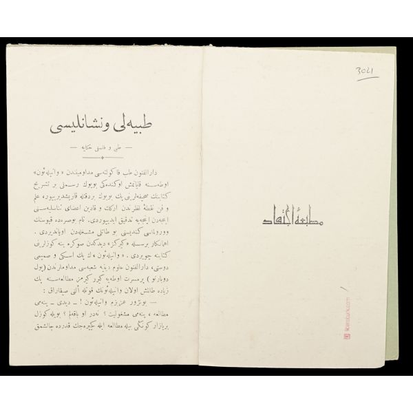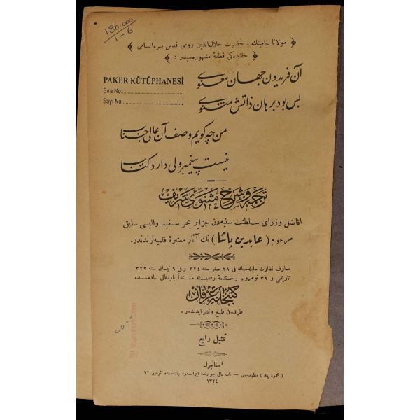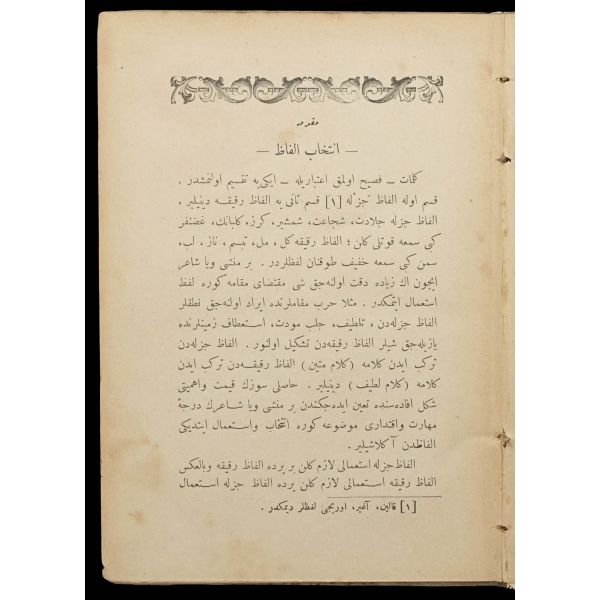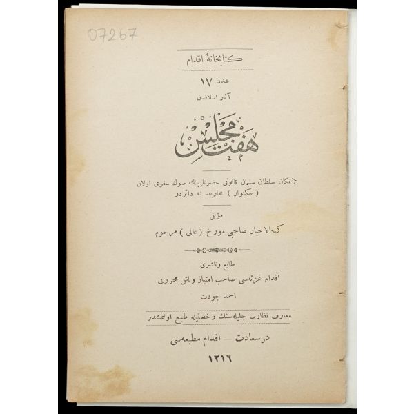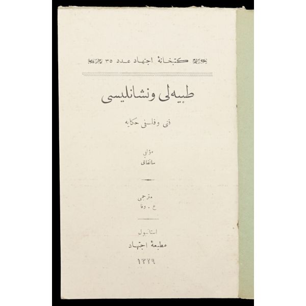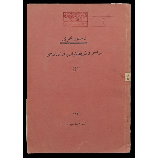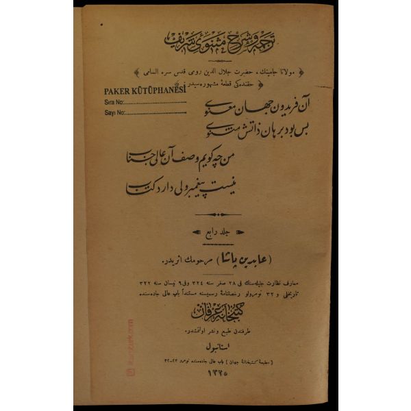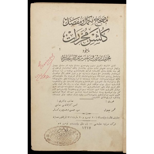 Orijinal cildinde şahıs damgası ve ´Librairie Militaire İslam´ ve sülüs hatla yazılı ´Kütübhane-i İslam Askeri´ mührü mevcuttur. Kitap sırttan ayrılmıştır.