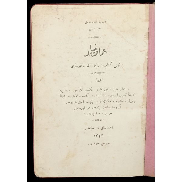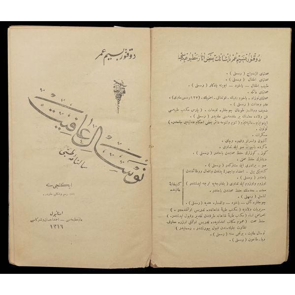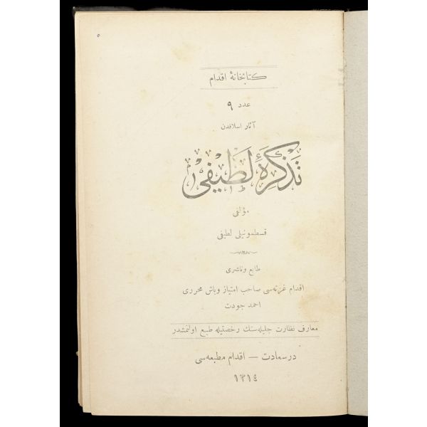 Kitap 1 - Cilt 1: Kütübhane-i İrfan - Mahmut Bey Matbaası - 1324 - 326 sayfa; Cilt 2: Kütübhane-i İrfan - Matbaa-i Kütübhane-i Cihan - 1324 - 296 sayfa; Cilt 3: Kütübhane-i İrfan - Matbaa-i Kütübhane-i Cihan - 1324 - 269+2 sayfa.