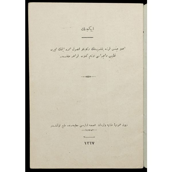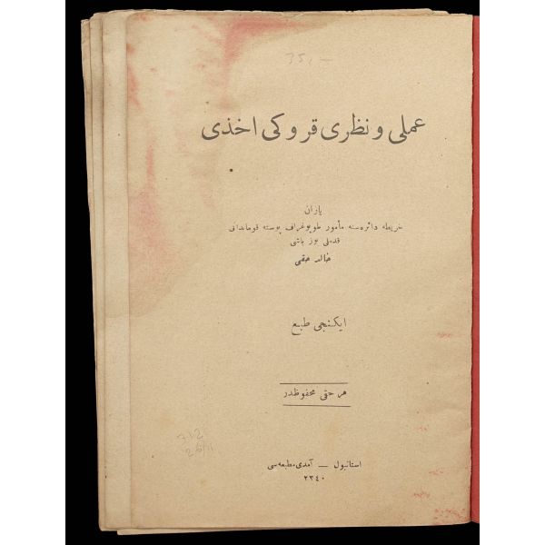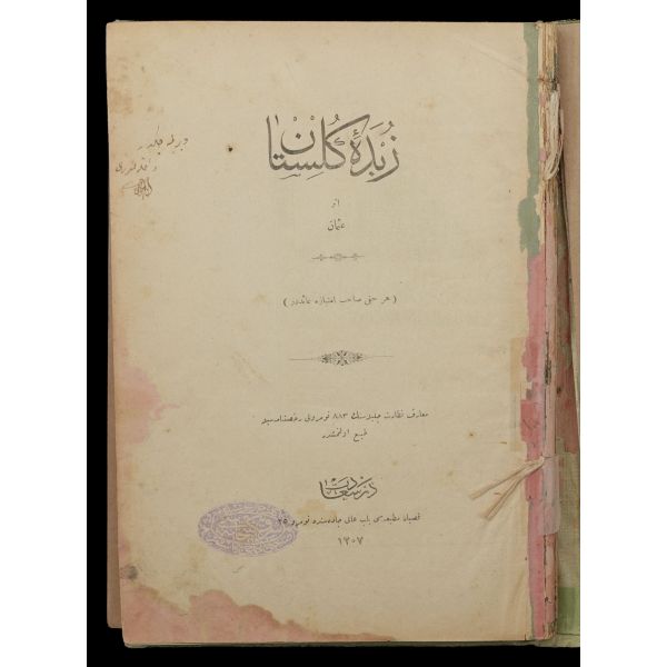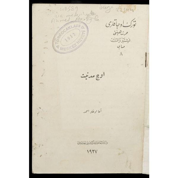 Kitabın iç kapağında "Türk Ocakları Merkez Heyeti 1912" damgası mevcuttur.
