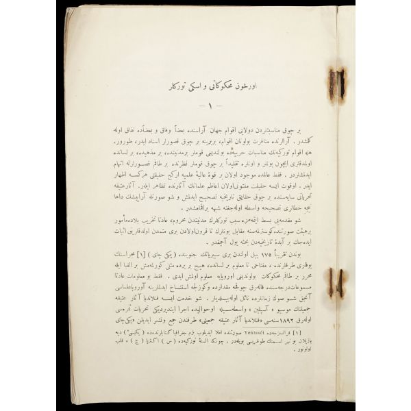 Necip Asım’ın bu eserinde Eski Türklere ait bilgiler, Göktürkçe dil bilgisi kuralları, Türkolog Radloff’un bir makalesi ile Bilge Kağan ve Kül Tigin Yazıtlarının çevirileri bulunmaktadır. Orhun yazıtlarını Türklere tanıtan ilk kaynak olması sebebiyle büyük öneme sahiptir.