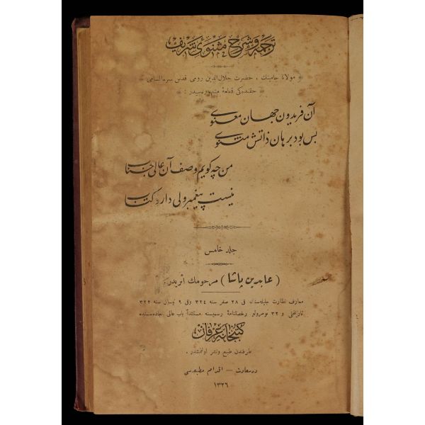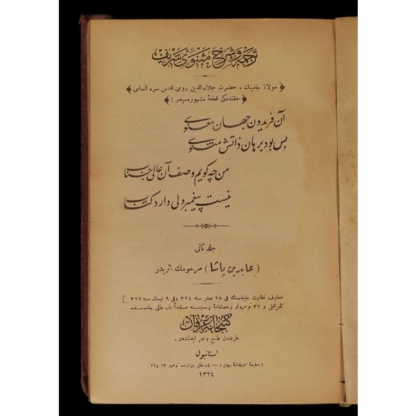 Mevlânâ Celâleddin Rumî´nin tasavvuf anlayışını içeren ve İslam kültürünün önemli eserlerinden biri olan Mesnevi´ye Abidin Paşa tarafından yapılan bu şerh, son dönemdeki meşhur Türkçe şerhlerdendir. Paşa´ya şöhret kazandıran ve her şeyden ziyade bu eseriyle tanınmasını sağlayan çalışma, Mesnevî´nin 1. cildinin şerhi olup toplamda 6 ciltten oluşur ve daha çok Sarı Abdullah Efendi, Bursevî ve Ankaravî şerhlerine dayanır. 1. Kitap sırttan ayrılmıştır.