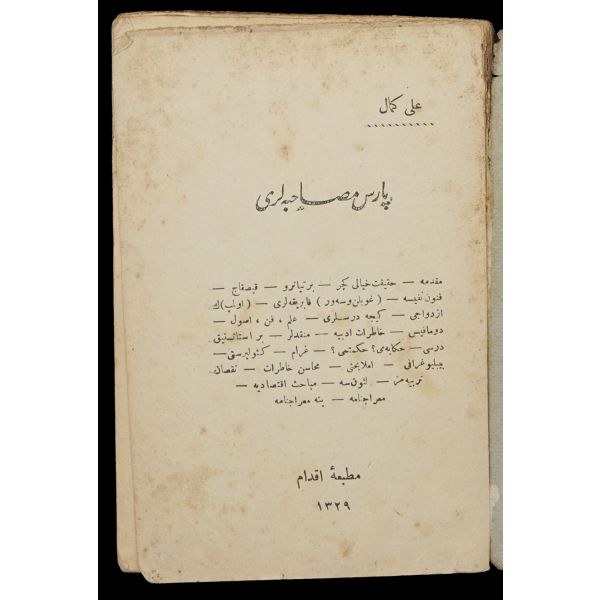 "Kendine özgü dili, anlatımı ile ilgi çekeceğini düşündüğümüz Paris Musâhabeleri, bundan yüz yıl öncesinin Fransa’sını mütecessis bir Türk gazetecinin dikkatleriyle önümüze getirmektedir. Ali Kemâl, Türkçeyi ustalıkla kullanması, üslûbundaki canlılık ve ifadesindeki açıklık bakımından devrinin yazarları tarafından hep takdir edilmiştir. Peyâm-i Edebî’de başyazarlık yaptığı dönemde Yahya Kemal, Rıza Tevfik, Yakup Kadri gibi devrin önemli yazar ve şairlerini bir araya getirmiş ve düşünce ve sanat yazıları ile ilgi odağı olmuştur."