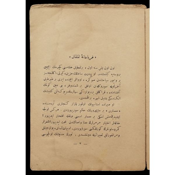 Kitabın son sayfasında sol alt köşede kopma mevcuttur.