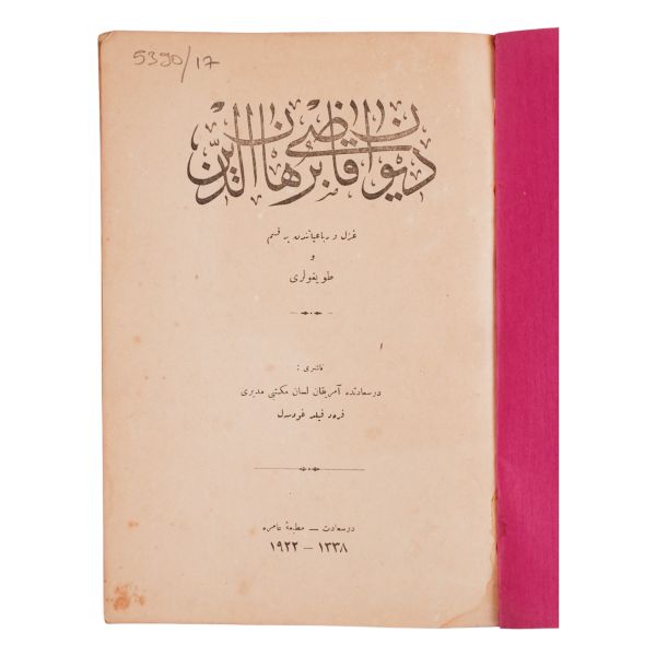 Hüseyin Suat Yalçın´ın sert eleştiriler içeren şiir kitabı. *Sırtı sağ taraftan cildinden ayrıktır. Bazı formaları ciltten ayrıdır.
