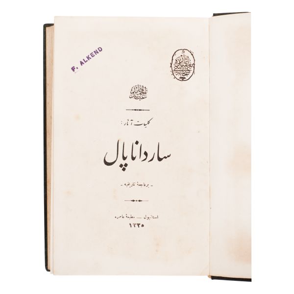 "İttihâd ve Terakkî cemiyet-i muhteremesine takaddüme-i ihtirâm. A. H." -SARDANAPAL - BİR FÂCİA-İ TÂRİHİYE- -TÂRIK -TAYFLAR GEÇİDİ -YÂDİGÂR-I HARB Sardanapal, Abdülhak Hâmid´in son Asur kralı Sardanapalus üzerinden yönetim ve siyaset eleştirisi yaptığı oyunudur. Lord Byron´un aynı adı taşıyan oyunundan oldukça farklıdır.