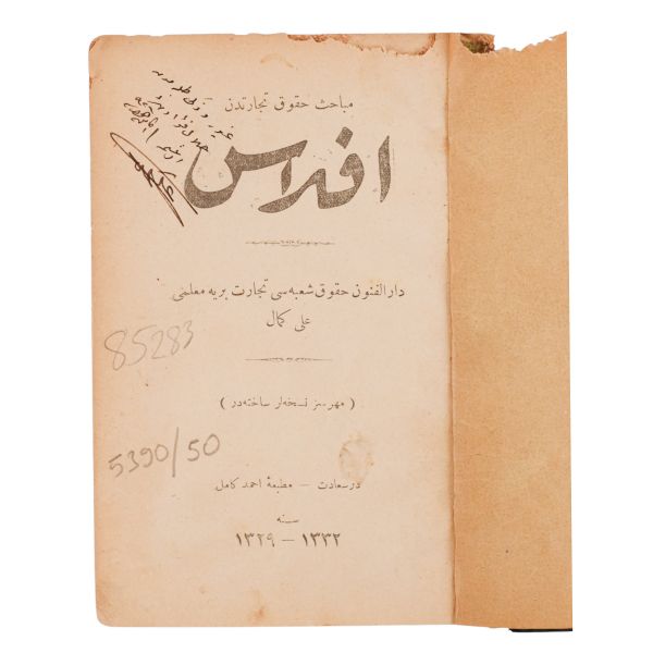 Darülfünun Hukuk Fakültesi kara ticareti hocası Ali Kemal tarafından yazılan, ticaret hukukunda önemli bir mesele olan iflas´a dairdir. *Kapaklarının baş tarafında cüzi kemirgen yeniği mevcuttur. Cildin sırtı büyük oranda eksiktir.