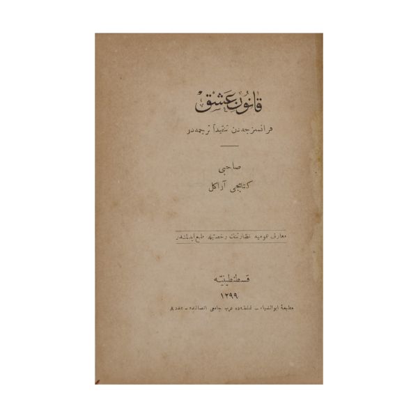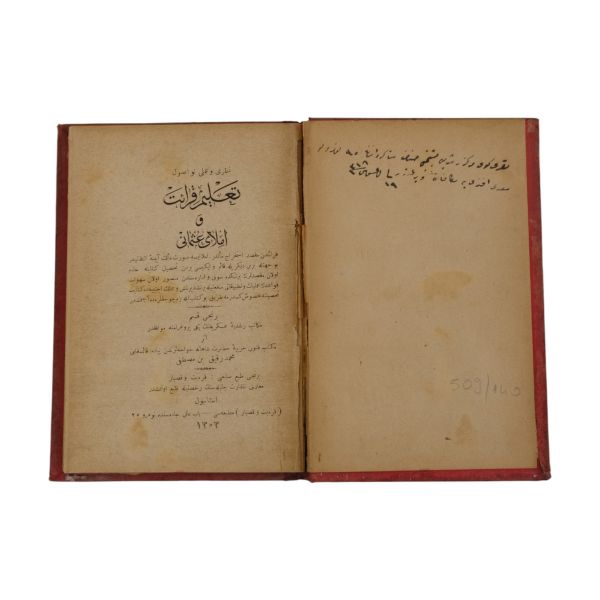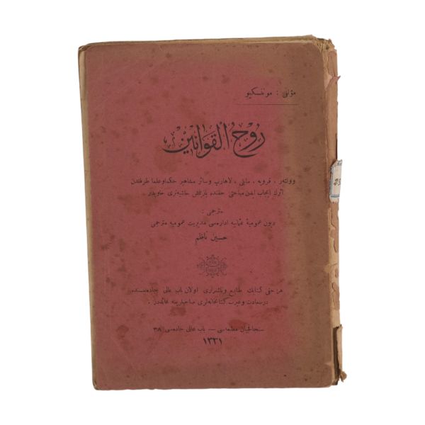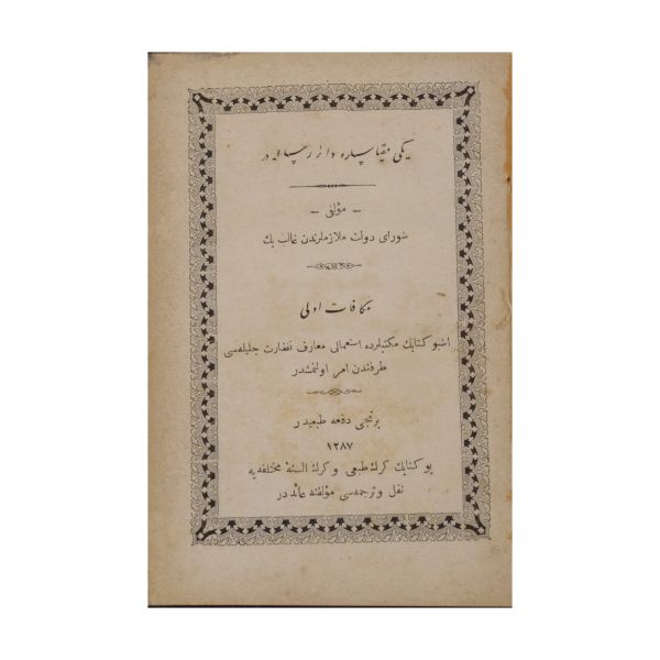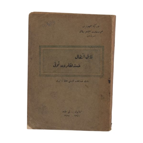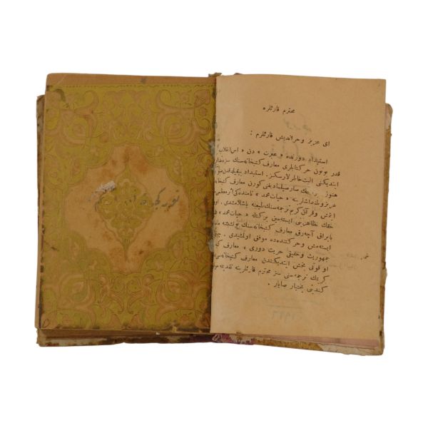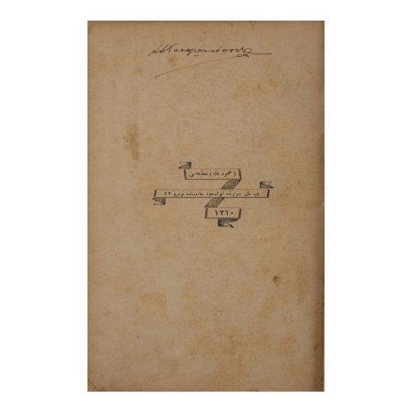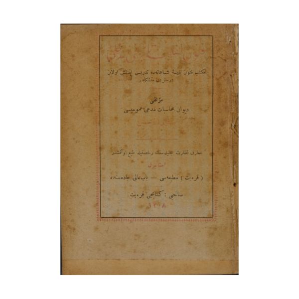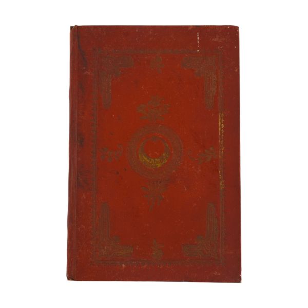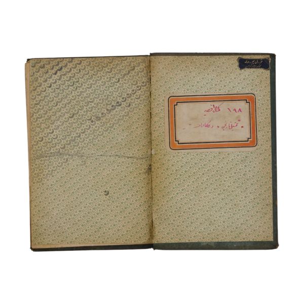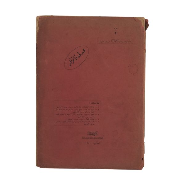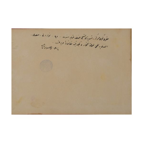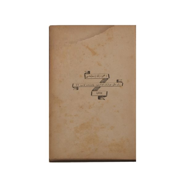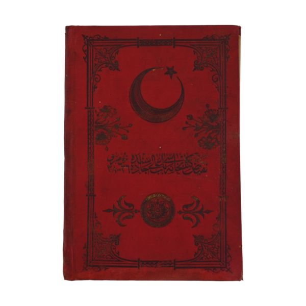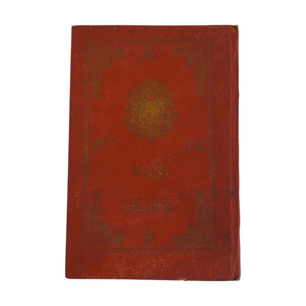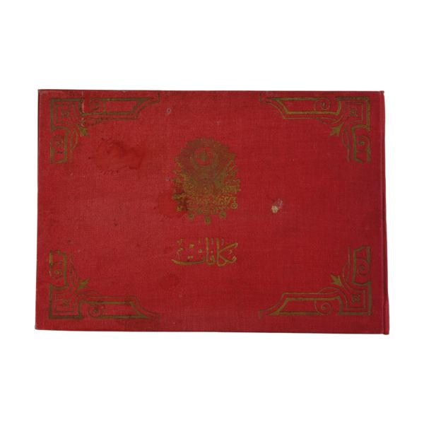 Arka yüzünde Kanaat Kütüphanesi, ön yüzünde 2. Abdülhamid tuğralı ve "Hürriyet, adâlet, uhuvvet, müsâvat" yazılı makâfat cildinde...