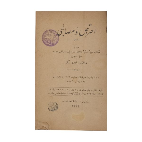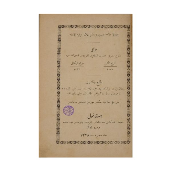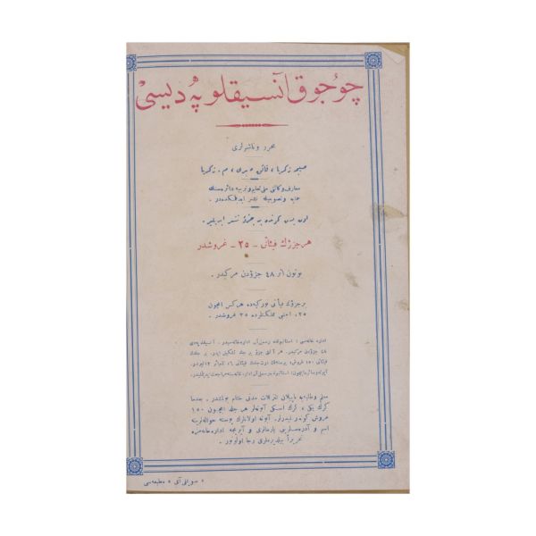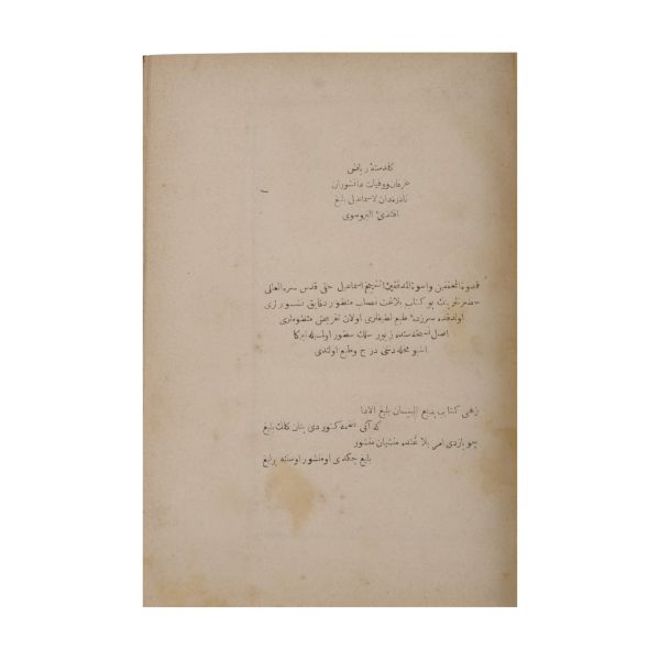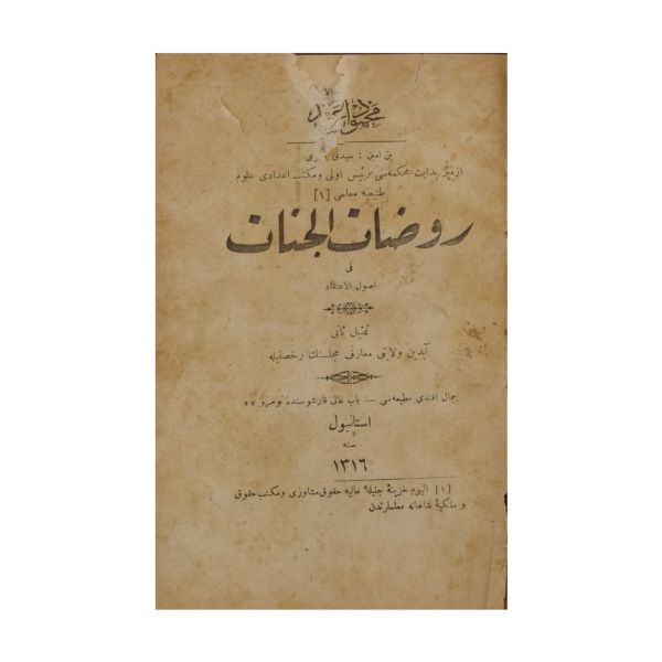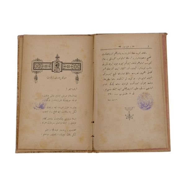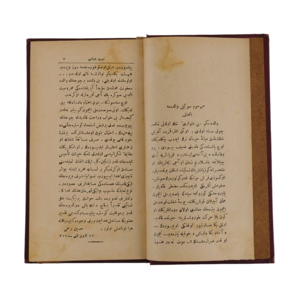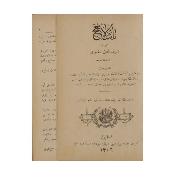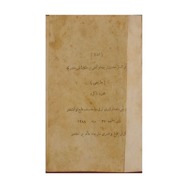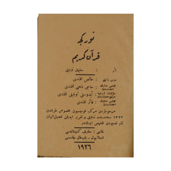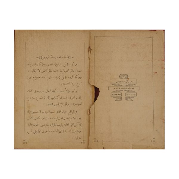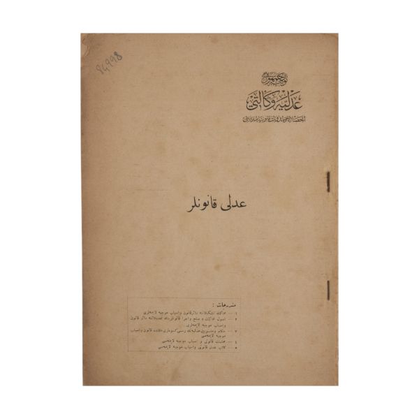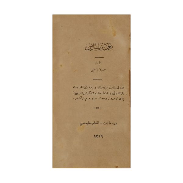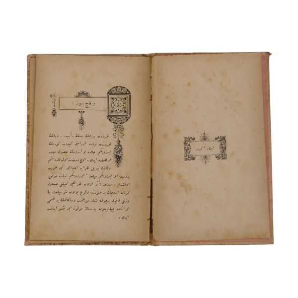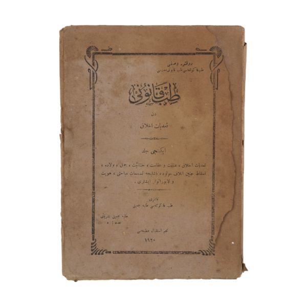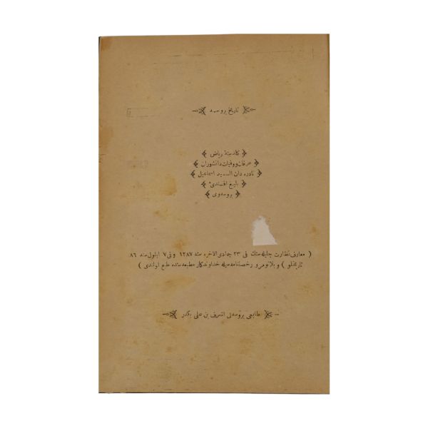 Arka yüzünde Kanaat Kütüphanesi, ön yüzünde 2. Abdülhamid tuğralı ve "Hürriyet, adâlet, uhuvvet, müsâvat" yazılı makâfat cildinde...