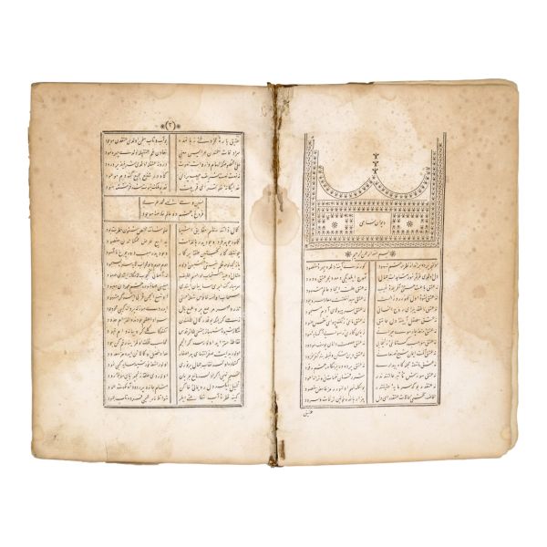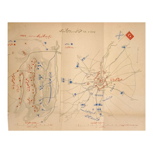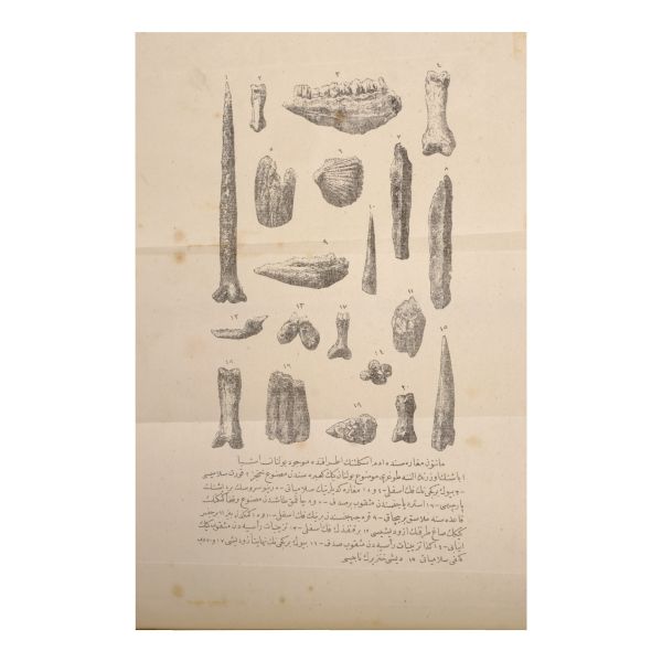 Mükâfat cildinde. 1 adet katlanır haritalı ve çizimlerle desteklenmiş Osmanlıca topoğrafya kitabı.
