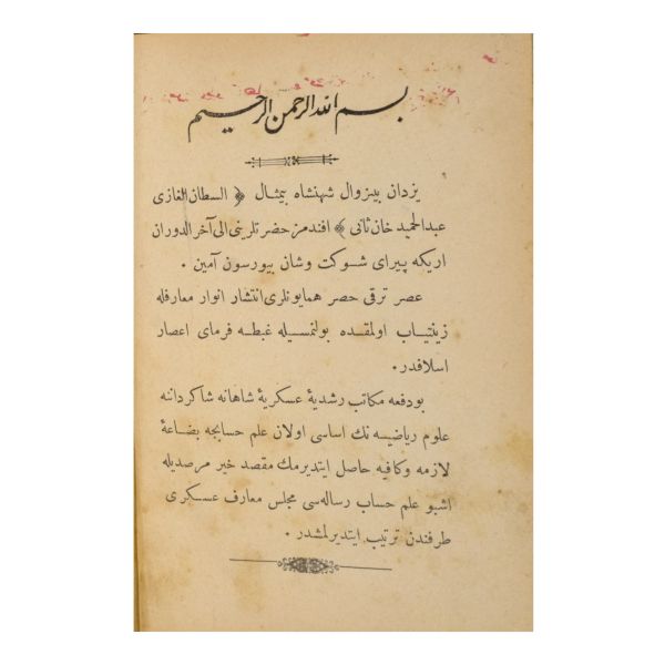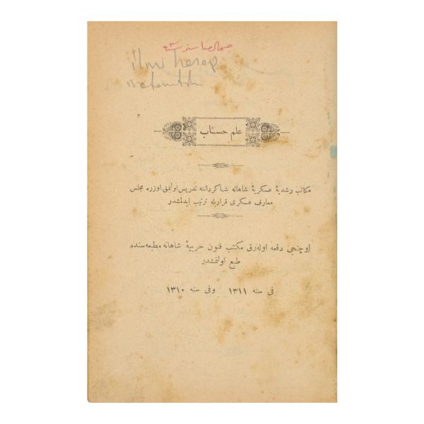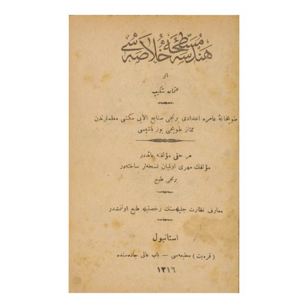 Askerî rüşdiye öğrencilerine ders kitabı olarak hazırlanmış matematik kitabı.