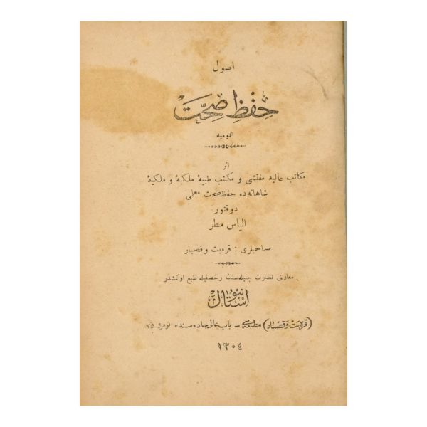 Bireysel ve toplumsal sağlığı korumak için yazılmış kapsamlı bir eser. Mekteb-i Tıbbiye´de hıfzıssıha muallimi İlyas Bey tarafından yazılmıştır.