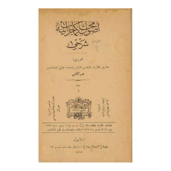 Mükâfat cildinde. Osmanlı dönemi ordu müsvedde, yevmiye ve defter-i kebir. Meclis-i Maarif-i Askerî tarafından beğenilerek Mekteb-i Fünûn-i Harbiye öğrencilerinin kullanılmasına müsaade edilmiştir.