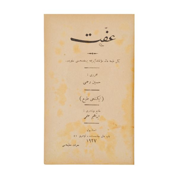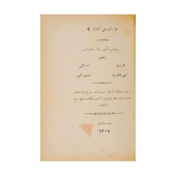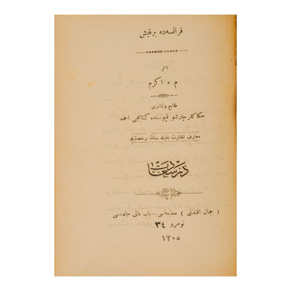 Türk edebiyatının ilk psikolojik romanının Osmanlıca baskısı.