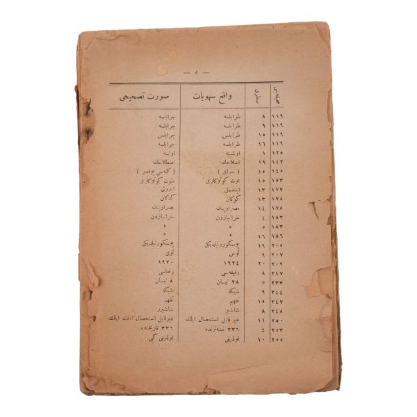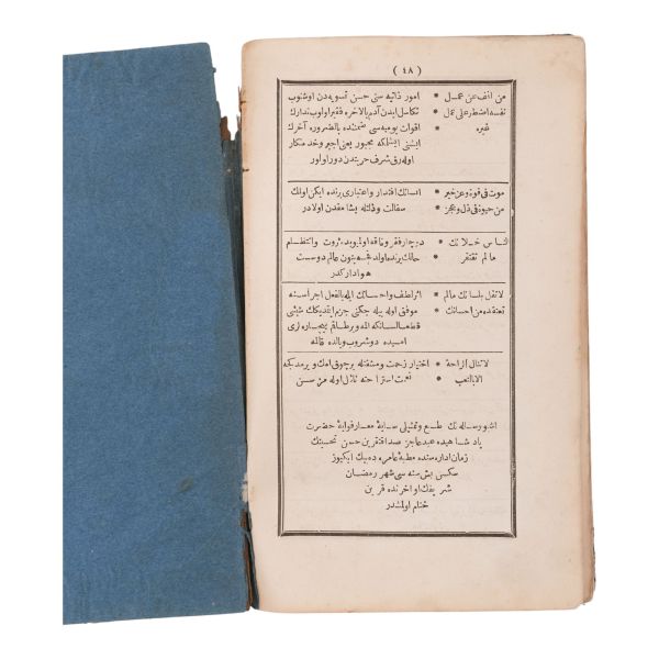 *Ön kapak tarafında sırt-forma bağlantısı gevşemiştir. Künye sayfası kopuk haldedir. Sondaki fihrist bölümünde dört sayfanın kenarında yırtılma vardır.
