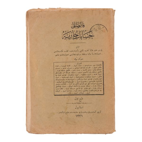 Yıldız Teknik Üniversitesi´nin Fen Bilimleri Fakültesi´nin öncülü sayılan Nafia Fen Mektebi yöneticisi İbrahim Selahaddin Bey tarafından yazılmıştır.