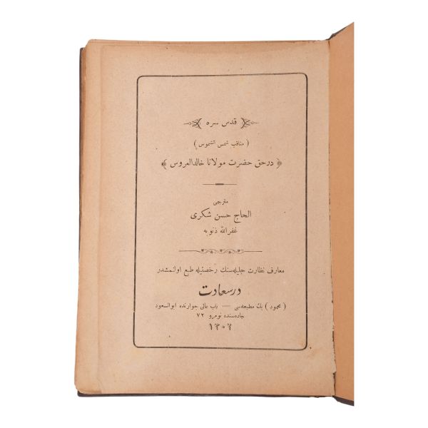 Filibeli Ahmed Hilmi´nin Kâdirîlik ve Selâmilik tarikatlarının iki büyüğünü anlattığı tasavvufî eseri.