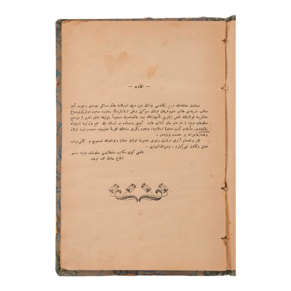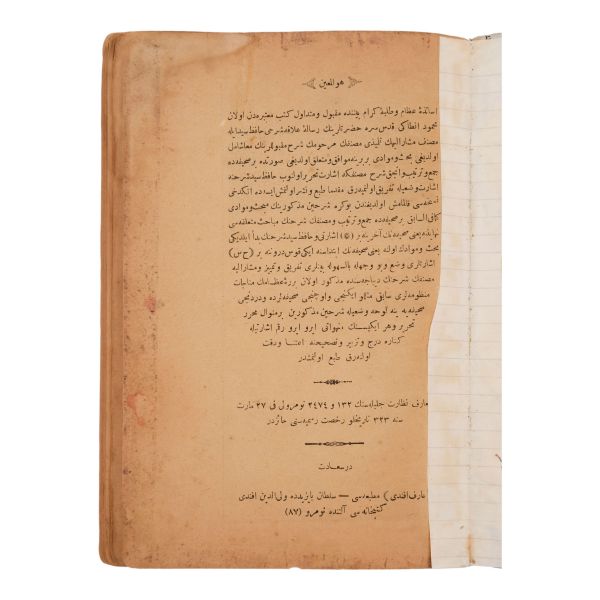 *Baş ve son sayfalarda metni okumaya mani olmayan kenar yırtıkları vardır. Sırtın dış kabı bir taraftan ayrıktır.