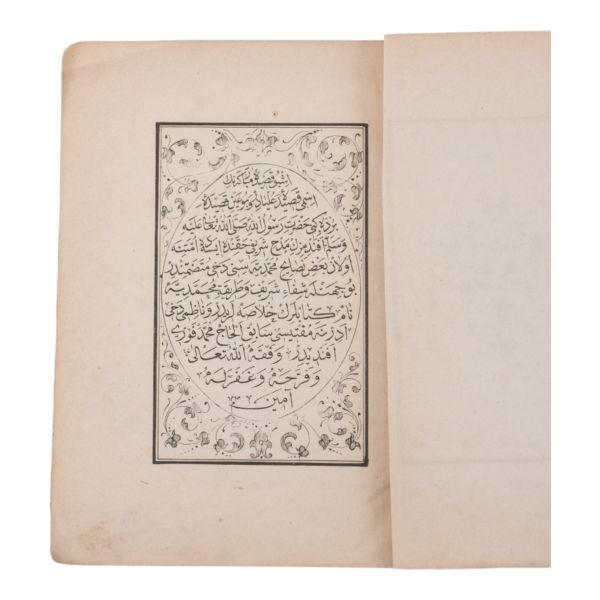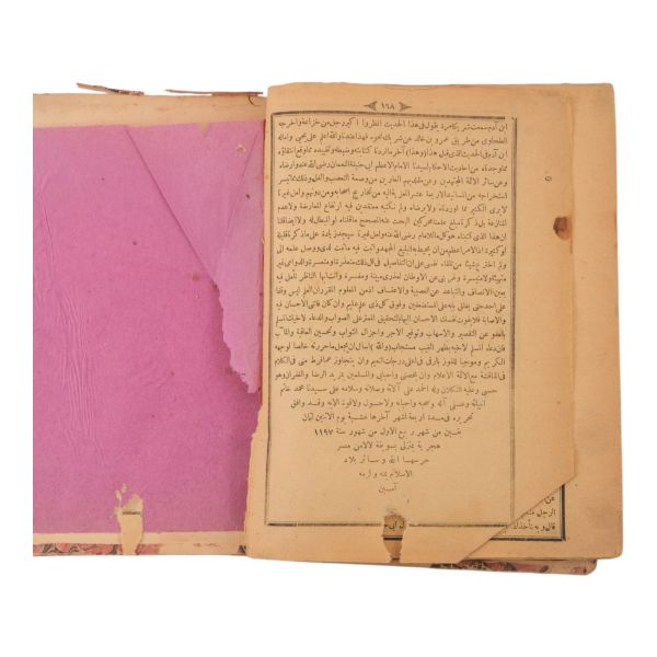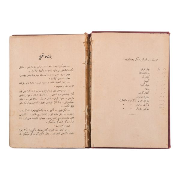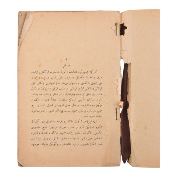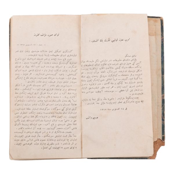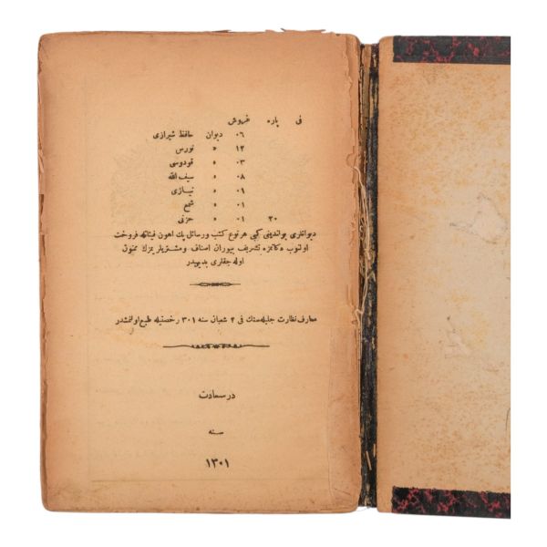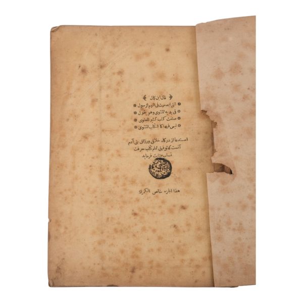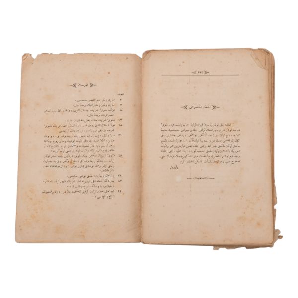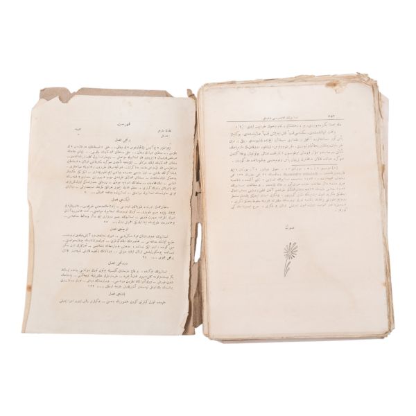 *Sırtı yarı ayrıktır. İç sayfalarda metne zarar vermeyen yırtık ve hasarlar vardır. Giriş sayfasını inceleyerek pey veriniz.