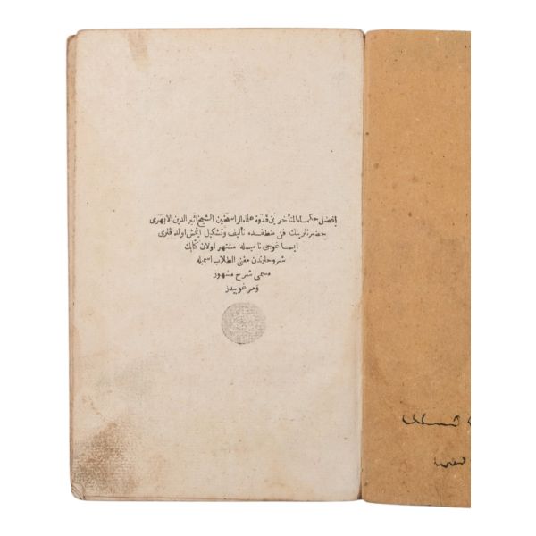 Medrese müfredatının üst seviye eserlerinden maani ilmi kitabı Muhtasar´a Desuki tarafından yazılan haşiye. *Cildi eklem yerlerinden dağılmaya müsaittir. Metin kısmı iyi durumdadır.