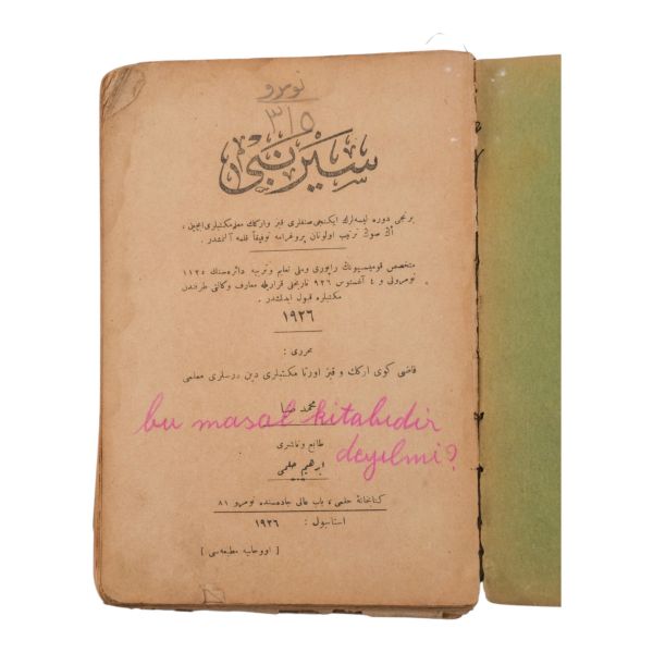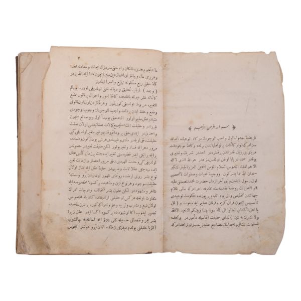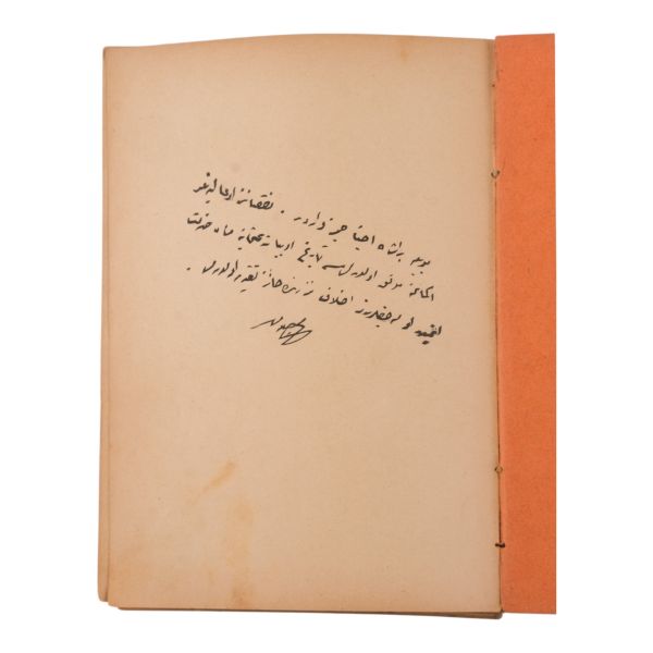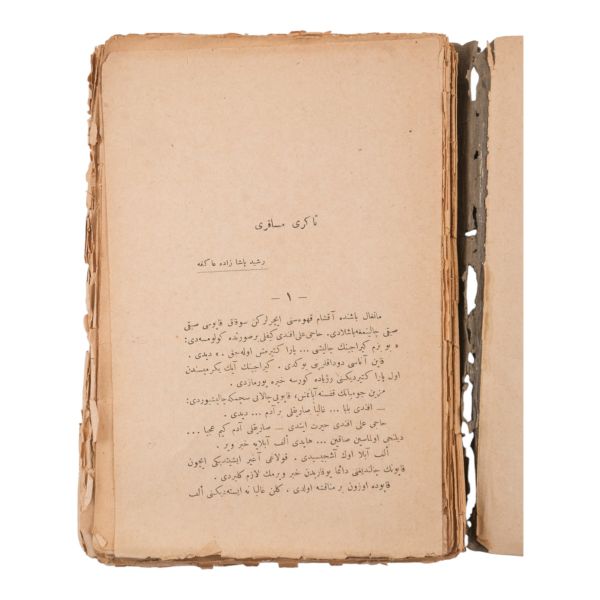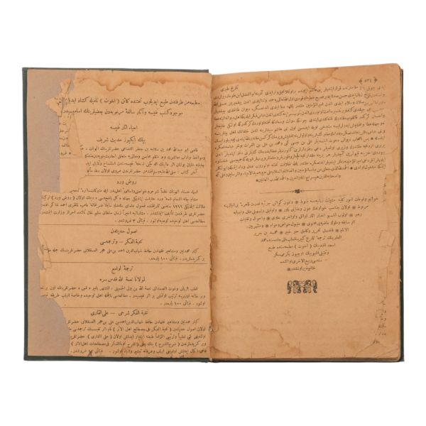 *Ön kapak tarafı sırttan ayrıktır. İç sayfalarda metne temas etmeyen yırtıklar vardır.