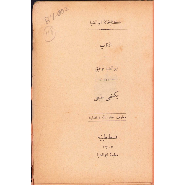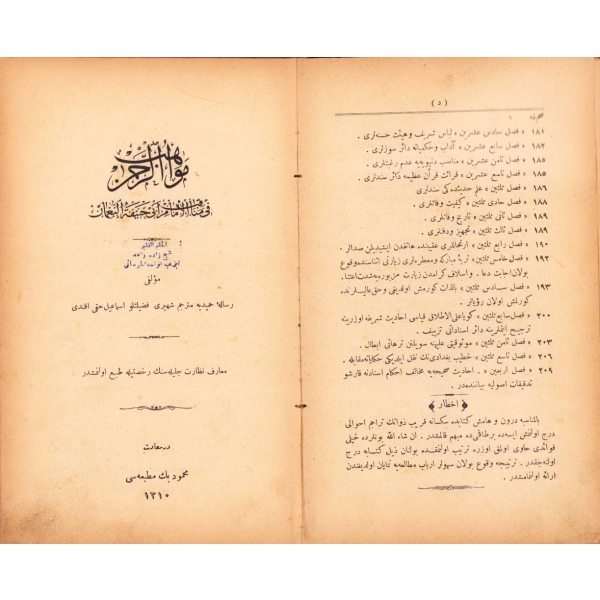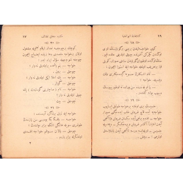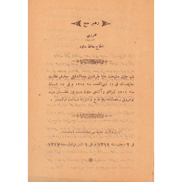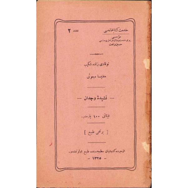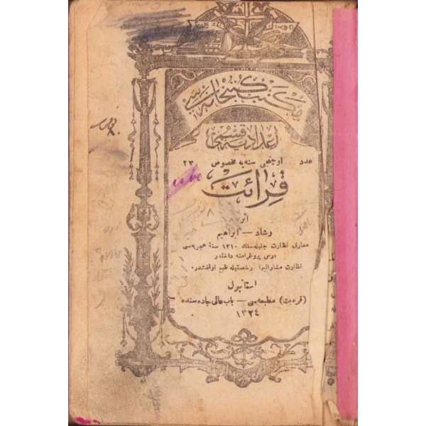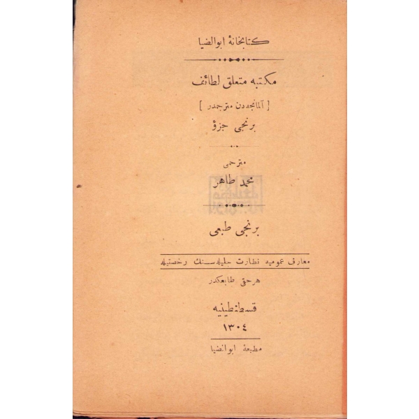 Usûl-i Tilâvet Yâhûd Sualli ve Cevâblı Tecvîd, Hüseyin Hıfzı, Şirket-i Mürettibiye Matbaası, İstanbul 1327, 22 s.; Morale et Instructive A L'Usage Des Ruchdie Militaires [Rüşdi Askerî Okullar]- 2 ve 3. Kısım, Constantinople 1902, 78+31 s., 12x17 cm, cildi ve sayfaları hafif yıpranmış haliyle