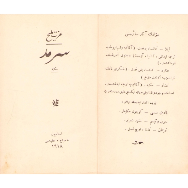 Frederic ile Bernerette, Alfred De Musset, çev. Hüseyin Rahmi Gürpınar, İkdam Matbaası, İstanbul 1313, 192 s., 10x14 cm, cildi ve bazı sayfaları yıpranmış haliyle