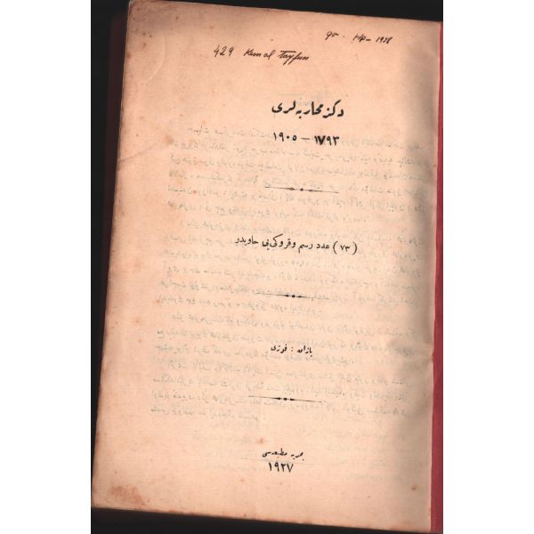 "Memleketten çıkarılan hanedandan bir şehzadenin rezalet, fuhuş, hıyanet ve sefahat-alude hayatı" *cildi ayrıktır ve sayfa numaralandırmasında karışıklık mevcuttur.