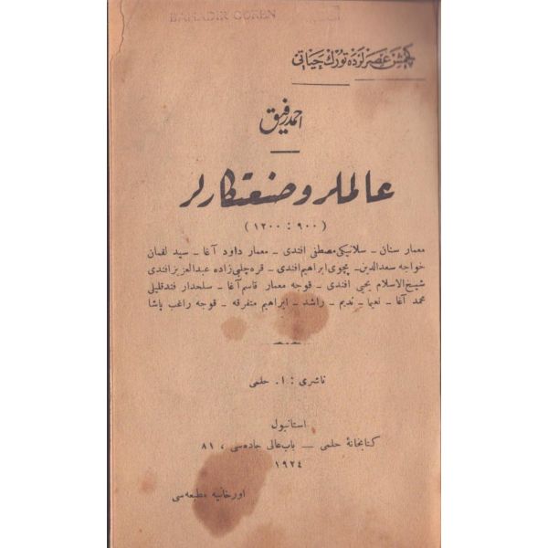 "Mimar Sinan- Selanikî Mustafa Efendi- Mimar Davud Ağa- Seyyid Lokman- Hâce Sadeddin- Peçovî İbrahim Efendi- Karaçelebizâde Abdülaziz Efendi- Şeyhülislam Yahya Efendi- Koca Mimar Kasım Ağa- Silahdar Fındıklılı Mehmed Ağa- Naîmâ- Nedim- Raşid- İbrahim Müteferrika- Koca Ragıb Paşa"