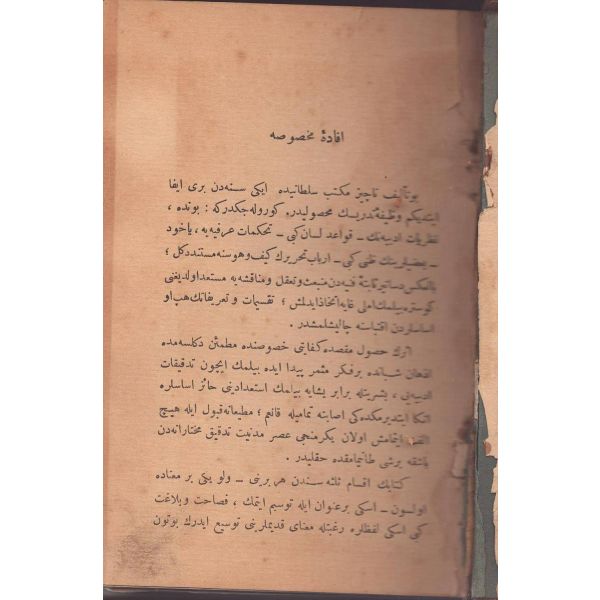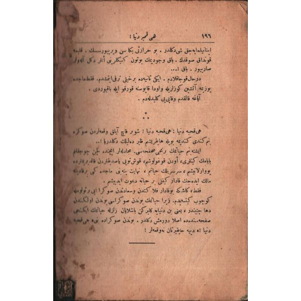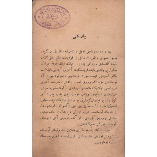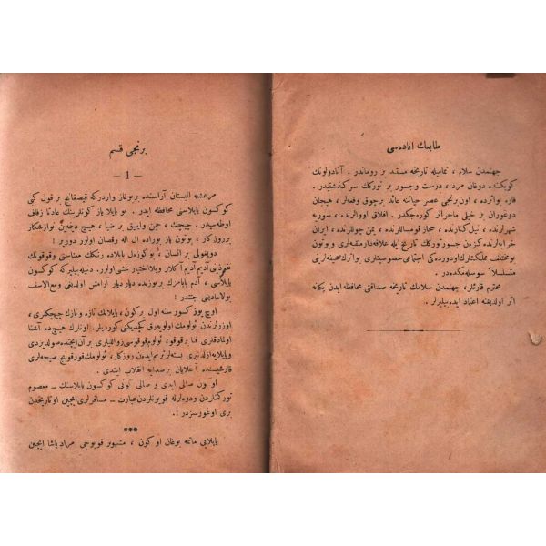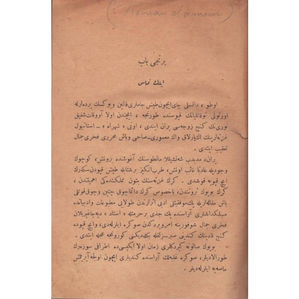 İlk olarak 1285/1868´de basılan eser, Türk edebiyatında romana geçiş sürecinin en önemli dönüm noktalarından birini temsil etmektedir. Benimsediği sembolik anlatım tarzı ile devrine yönelik siyasi, sosyal ve ekonomik bazı eleştiriler içeren eser, kimilerince ilk Tanzimat romanı sayılmaktadır. *Cilt sırtı kısmen ayrık haldedir.