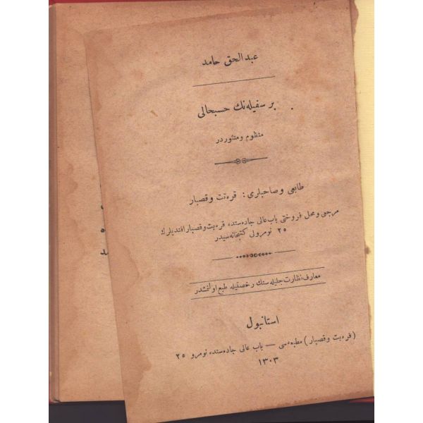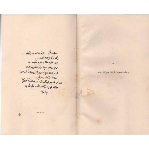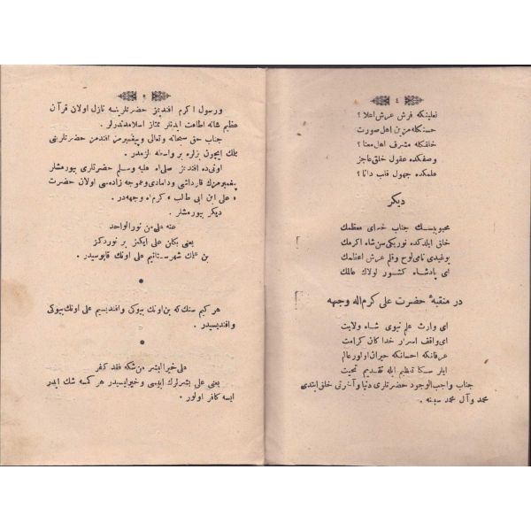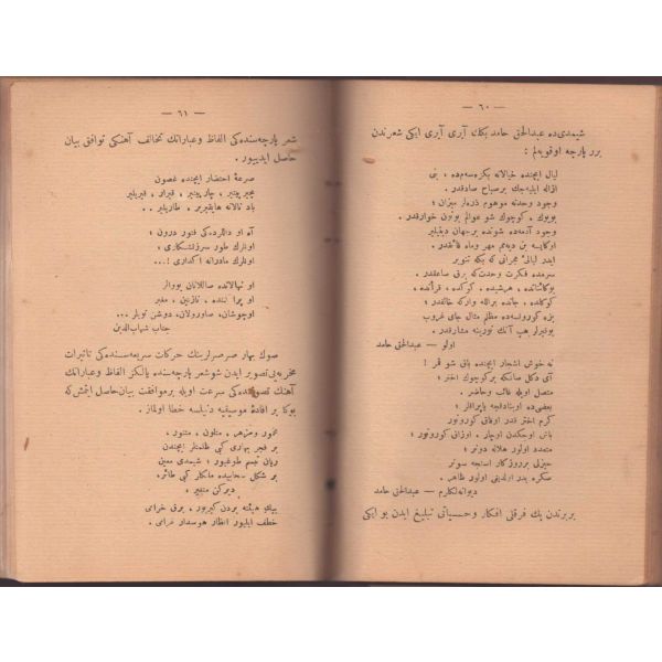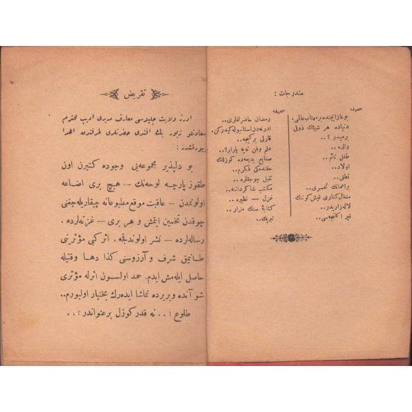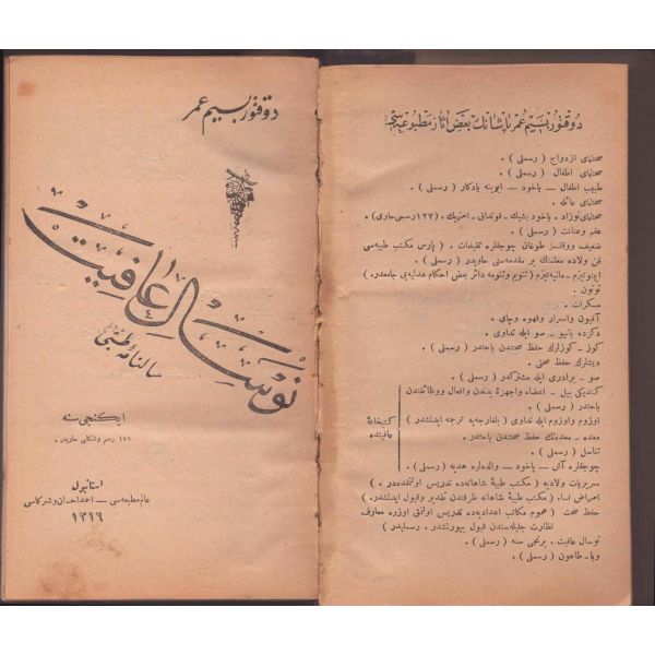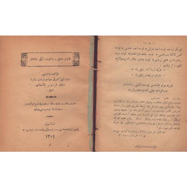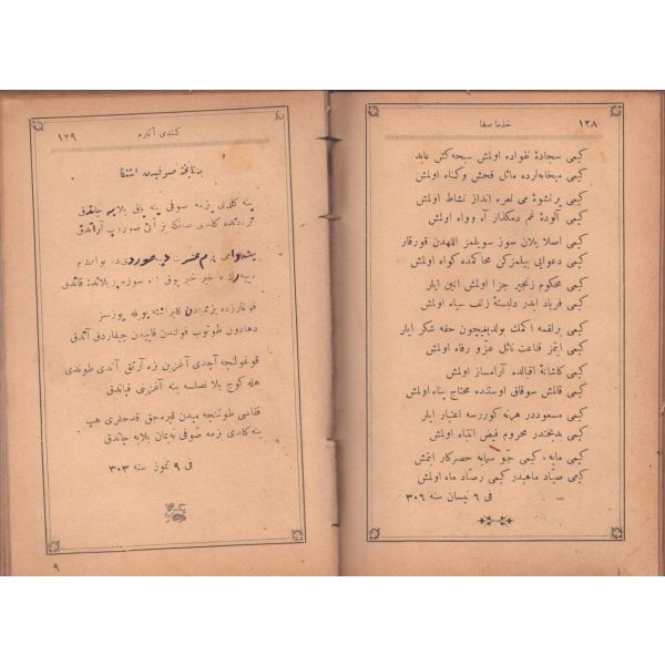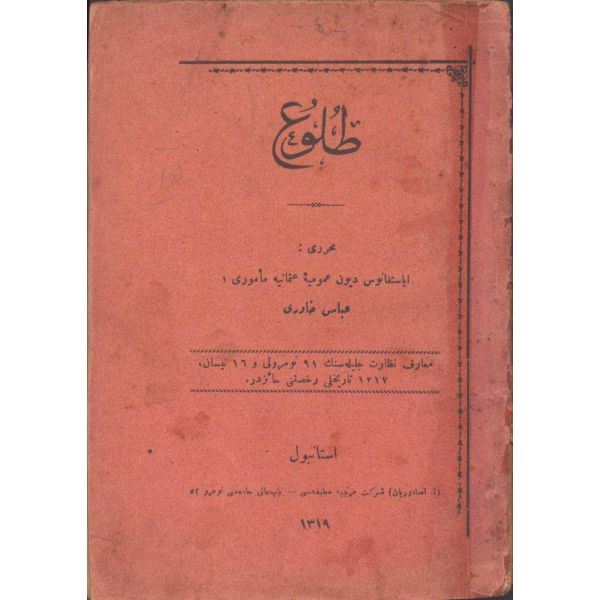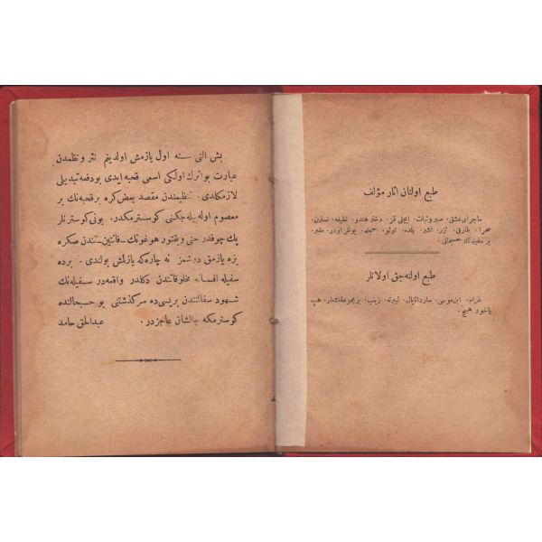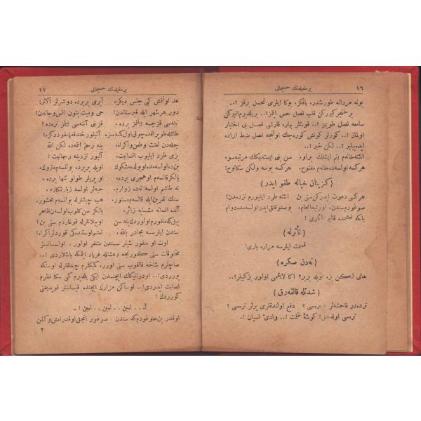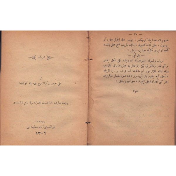 ŞEREFNÜMÂ, Ali Haydar, Feraizcizâde Matbaası, Bursa 1306, 8 s.; KÂNÛN-I AŞK YÂHÛD İKİ ÂŞIKLAR, Tarsus Kaimmakamı Emin, Mihran Matbaası, İstanbul 1304, 32 s.; GALATÂT, Sırrı, Ebuzziya Matbaası, İstanbul 1301, 63 s.; TECRÜBESİZ AŞK, Ahmed Rasim, Alim Matbaası, İstanbul 1311, 92 s., 12x17 cm