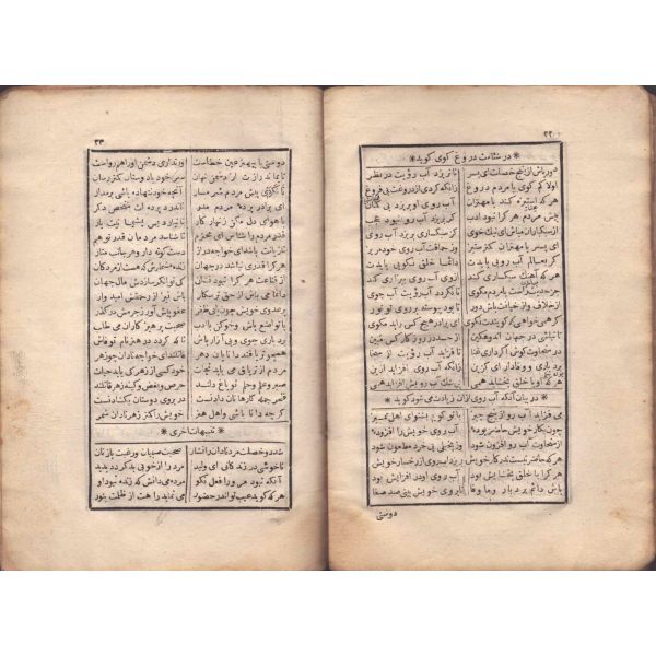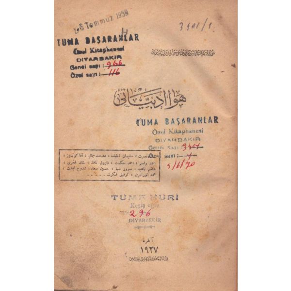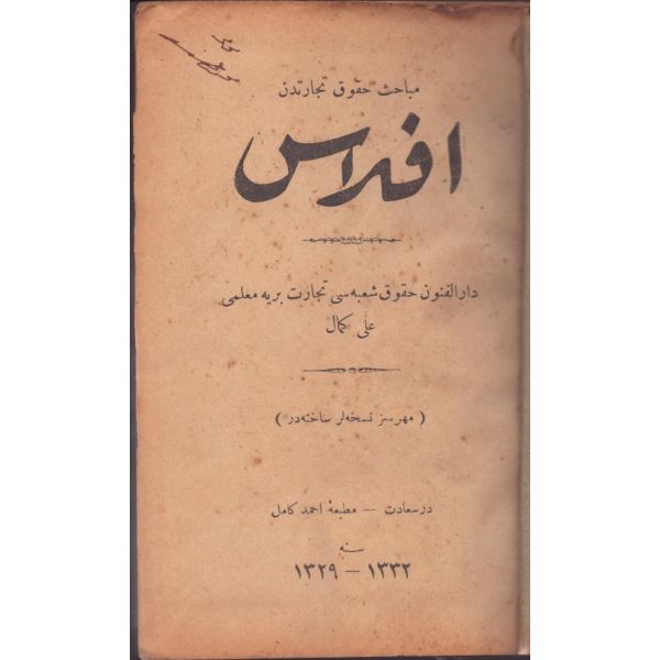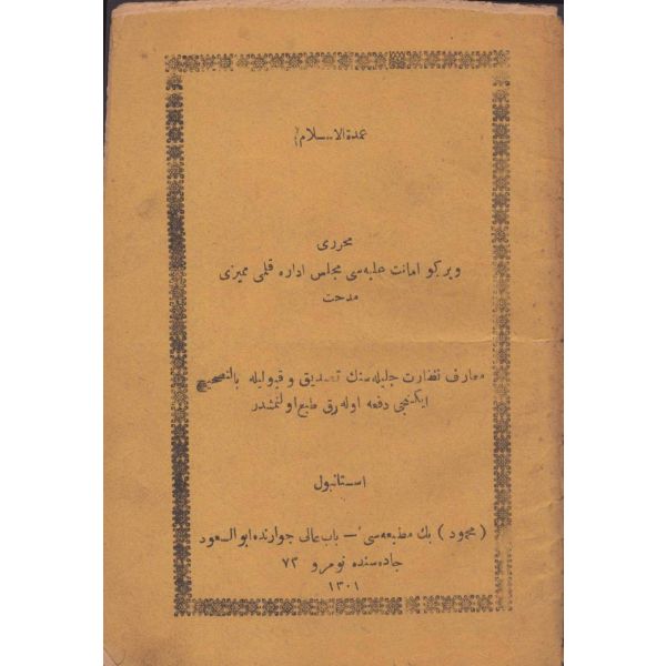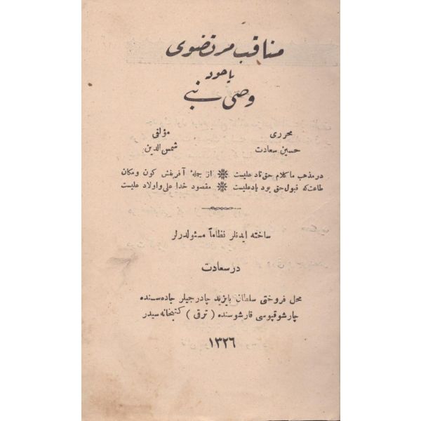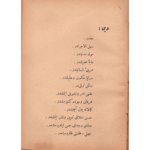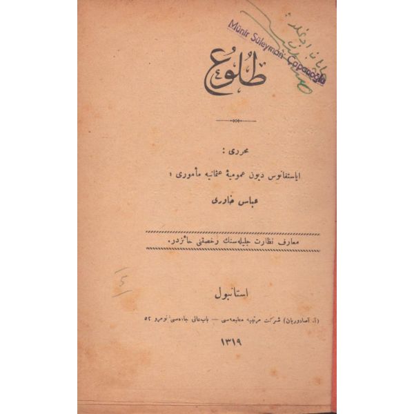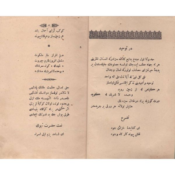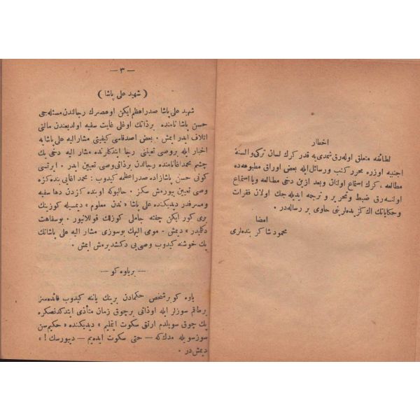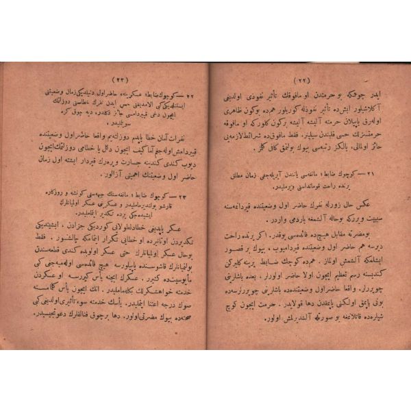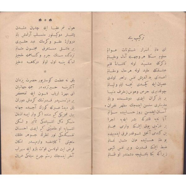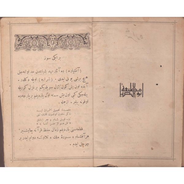 ŞEREFNÜMÂ, Ali Haydar, Feraizcizâde Matbaası, Bursa 1306, 8 s.; KÂNÛN-I AŞK YÂHÛD İKİ ÂŞIKLAR, Tarsus Kaimmakamı Emin, Mihran Matbaası, İstanbul 1304, 32 s.; GALATÂT, Sırrı, Ebuzziya Matbaası, İstanbul 1301, 63 s.; TECRÜBESİZ AŞK, Ahmed Rasim, Alim Matbaası, İstanbul 1311, 92 s., 12x17 cm