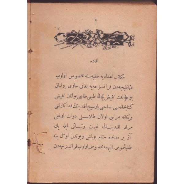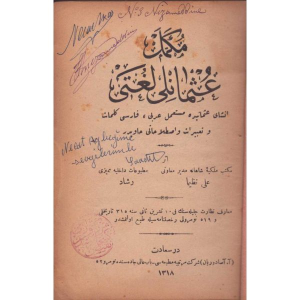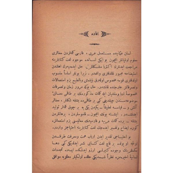"İnşâ-yı Osmânîde müsta´mel Arabî, Farsî kelimât ve ta´bîrât ve ıstılâhâtı hâvîdir [Osmanlı yazı dilinde kullanılan Arapça, Farsça kelime, tabir ve terimleri içermektedir]"