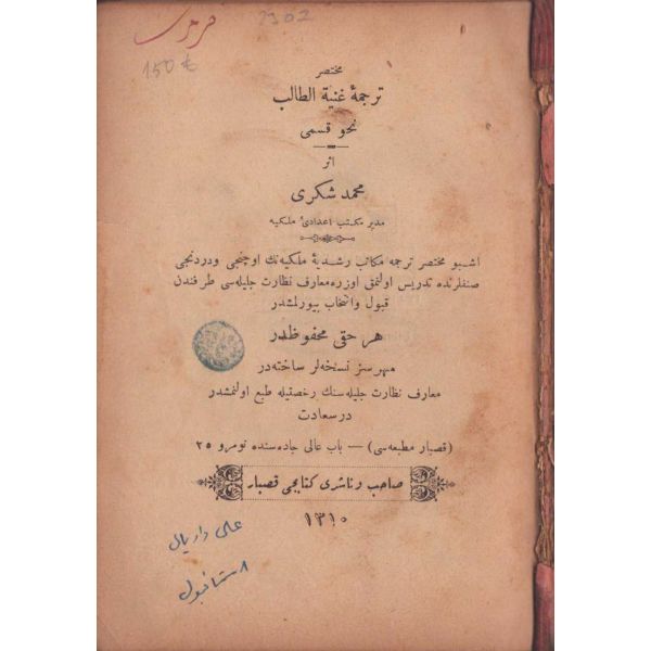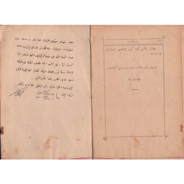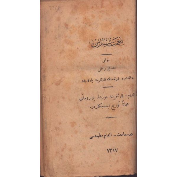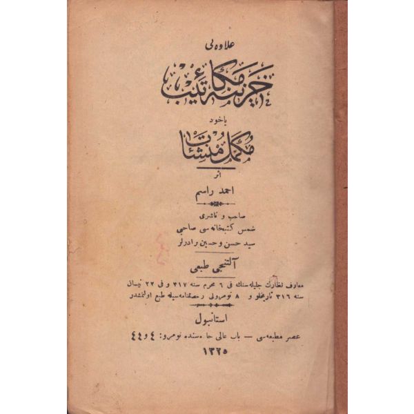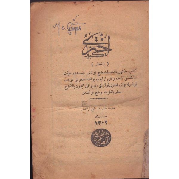 Kitabın arkasında el yazısıyla, "… tahminen bayrama dakika kalarak ibtida-i şimşek misali bir nev ateş, bunu müteakib şarkdan garba doğru barut dumanı gibi bir alamet-i farika zuhuruyla ba´dehu "kudret topu" namında gayet müdhiş bir sada aksetmiştir. Yevm-i mezkurda hava gayet berrak olduğunu ... üzere işbu mahalle şerh olmuşdur. 19 Nisan 1902" notu düşülmüştür.
