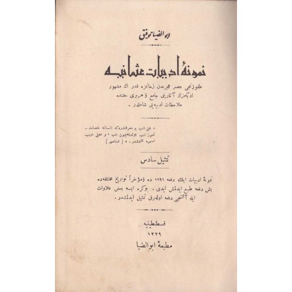 "Dokuzuncu asr-i hicrîden zamanımıza kadar ne meşhur üdebamızın âsârını câmi´ ve her biri hakkında mülâhazât-ı edebiyyeyi şamildir."