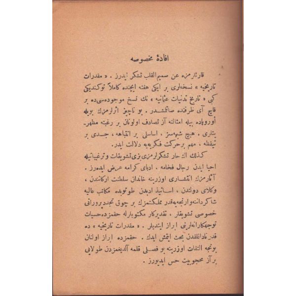 "İşbu Elif ile Mahmûd´un hikâye-i garibesi ve haşiyesinde tekmil olarak Âşık Ömer´in Dîvânı nadirü´n-nüshalar olduğundan bu ana kadar tab´ı mümkün olmadığından bi-hamdillah nüshaları derdest olub bu defa litografya destgâhında tab´ı müyesser olmuş ise de gayetle nadide bir kütüb olduğundan işbu mahalle şerh oldu."
