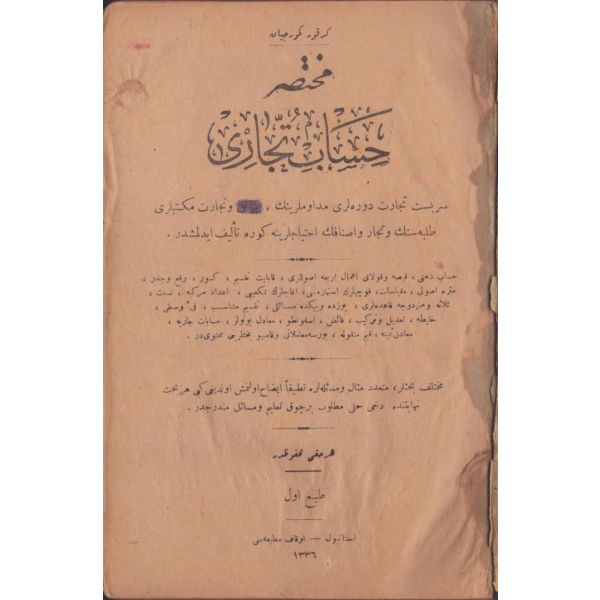 "Serbest ticaret devreleri müdavimlerinin, çırak ve ticaret mektebleri talebesinin ve tüccar ve esnafın ihtiyaclarına göre telif edilmişdir.
