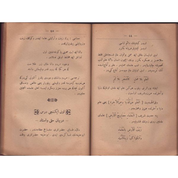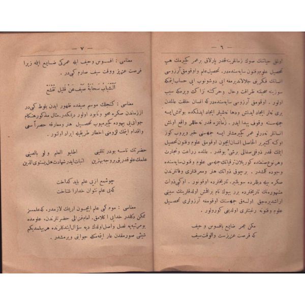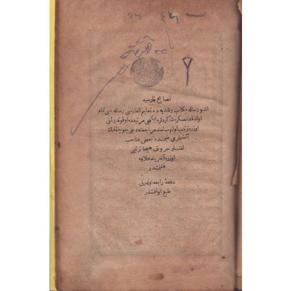 NESÂYİH-İ FÂRİSİYYE; "İşbu risale rüşdiye mektepleri Farsça öğretim risalesi tamam olduktan sonra şakirdlere ikinci mertebede okutulmak üzere hazırlanıp lügate müracaata dahi çocukların alışması zımnında bazı münasip kelimelere hece harfleri tertibi üzere sonuna ilave kılınmıştır."