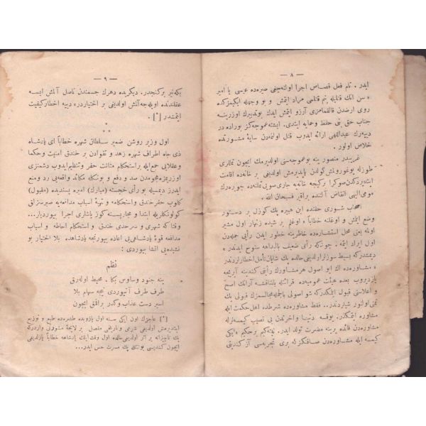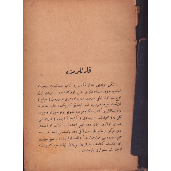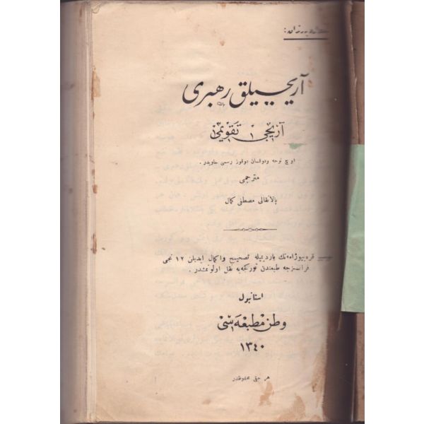 Arka kapağı kırık, kapak künyesi ters yapıştırılmış haldedir.