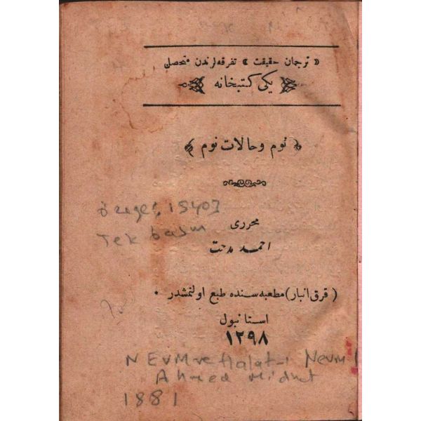 Deri cildinin ön kapağı eksiktir, yerine "Osmanlı Bankası" yazılı kapak eklenmiştir ve ayrıktır.