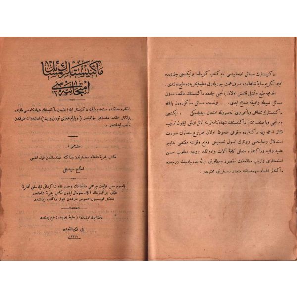 "İngiltere sefaininde müstahdem bilcümle makinistler ile ecanibden makinistlik şehadetnamesi talebinde bulunanlar hakkında meşahir-i müellifînden William Henry Thorn Werid namân-ı zevat tarafından telif edilmiştir."