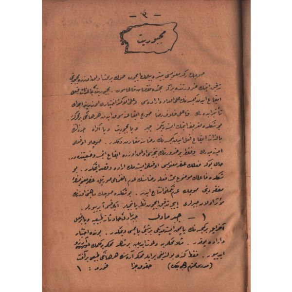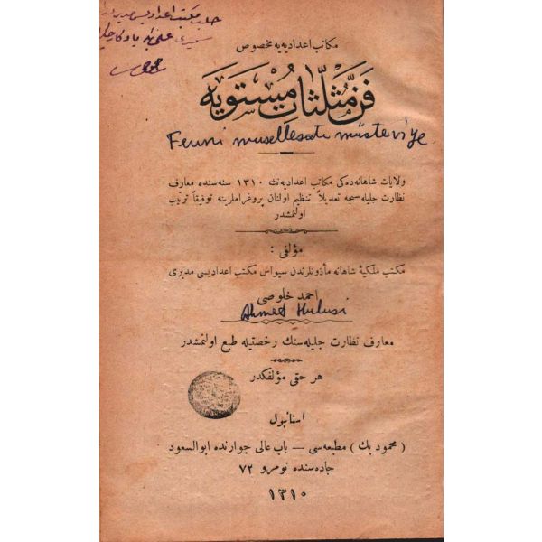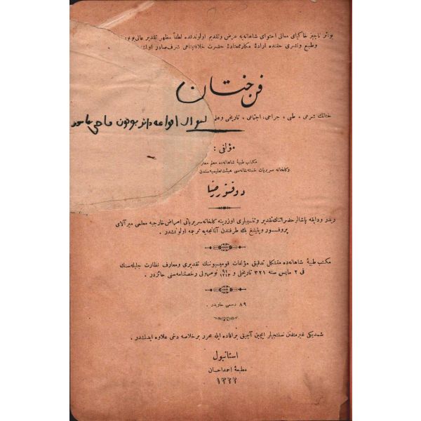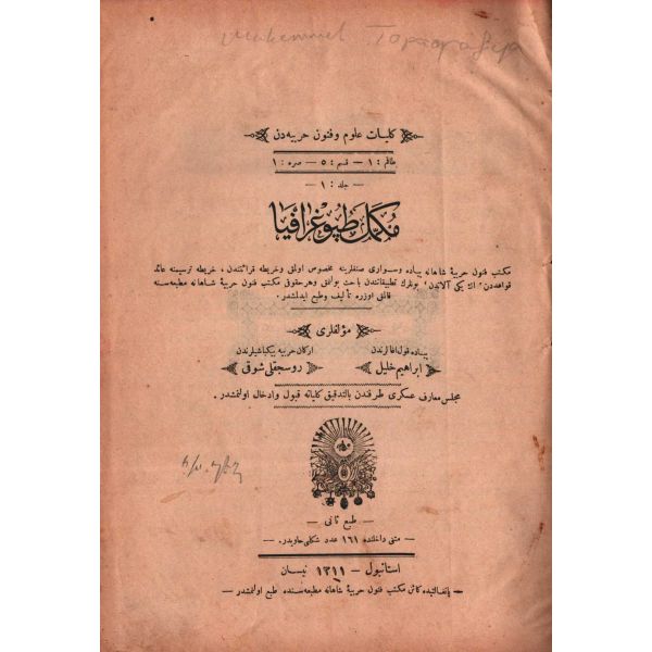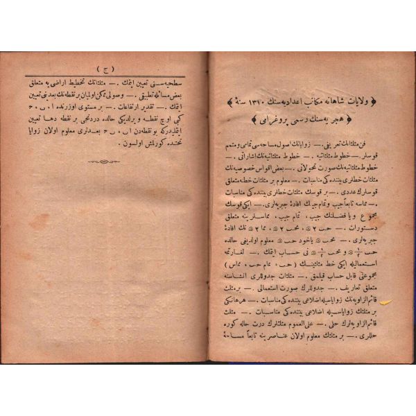 "Mekteb-i Fünun-ı Harbiye-i Şahane piyade ve süvari sınıflarına mahsus olmak ve harita kıraatinden, harita tersimine aid kavaidden, en yeni âlâtdan, bunların tatbikatından bâhis bulunmak..."