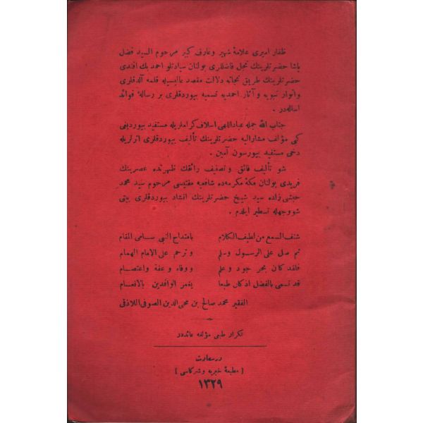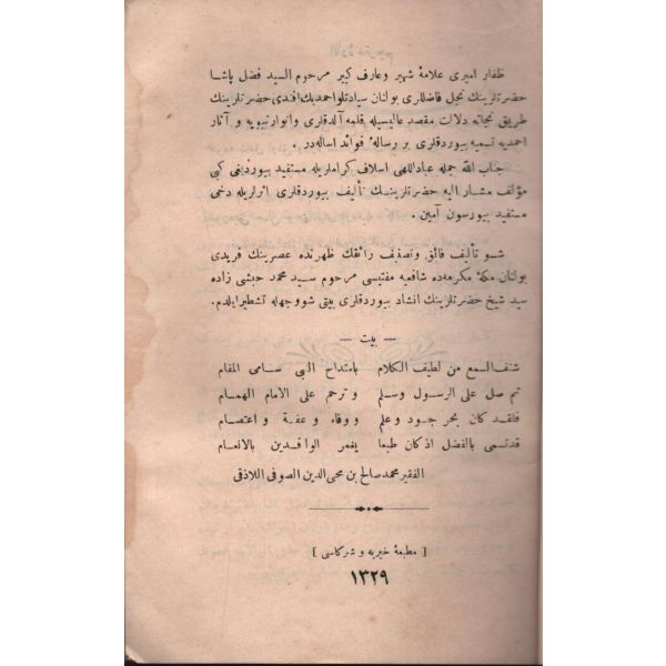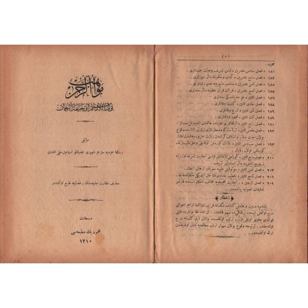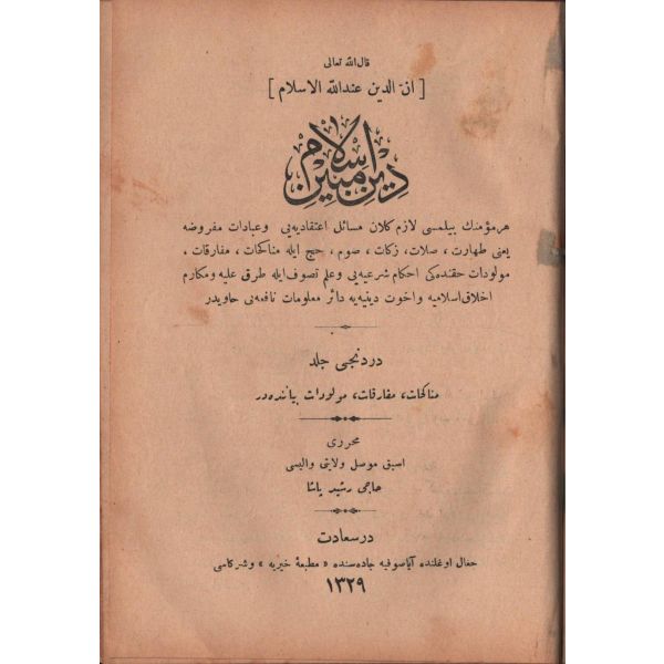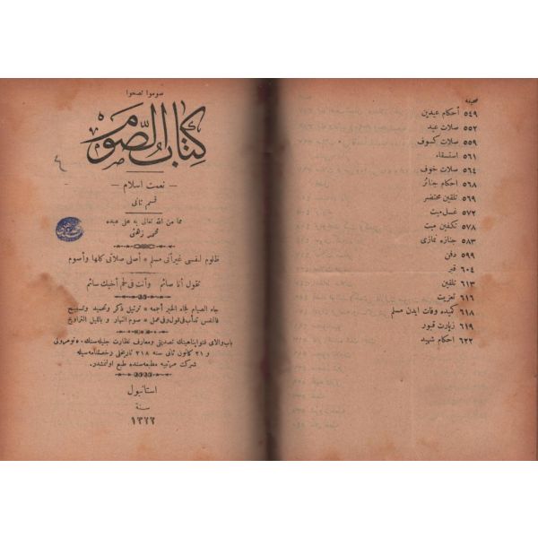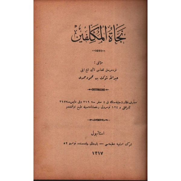 KİTÂBU´S-SALÂT, Şirket-i Mürettibiye Matbaası, İstanbul 1322, 628 s.; KİTÂBU´S-SAVM, Şirket-i Mürettibiye Matbaası, İstanbul 1322, 119 s.; KİTÂBÜ´Z-ZEKÂT, Şirket-i Mürettibiye Matbaası, İstanbul 1322, 46 s.; KİTÂBÜ´L-HACC VE´S-SAYD VE´Z-ZEBÂİH VE´L-UDHİYE VE´L-AKÎKA, 134 s.; 15x20 cm