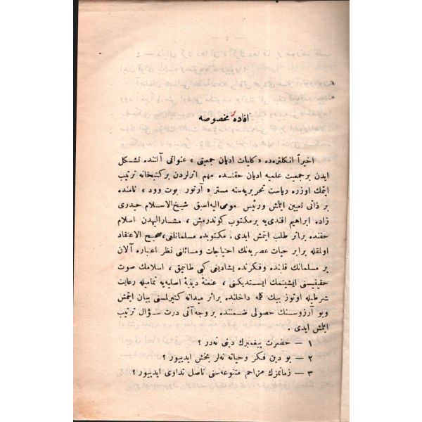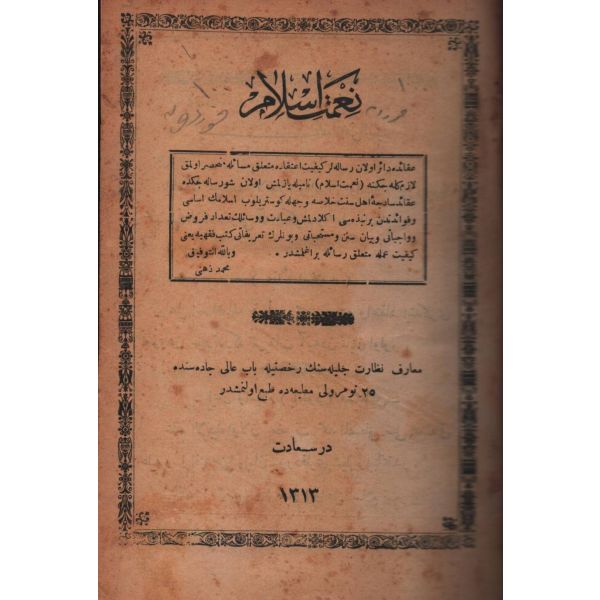 "Osmanlı Heyet-i Murahhasasının sulh konferansına takdim etdiği muhtıra ve Paris Sulh Konferansı´nın … Meclisi tarafından aldığı cevaba nazaran Osmanlı İslam Devleti meselesinin intikadî tetebbuudur"