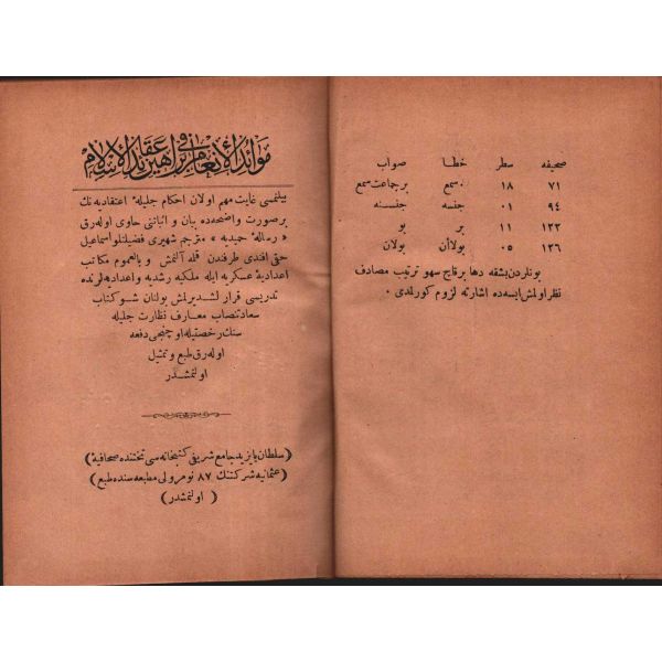 Mevâidü´l-İn´âm fî Berâhîn-i Akâidi´l-İslâm: "Bilinmesi gayet mühim olan itikad hükümlerinin açık bir şekilde beyan ve ispatını içermekte olarak "Risâle-i Hamîdiyye"nin ünlü mütercimi İsmail Hakkı Efendi tarafından kaleme alınmış ve tüm askerî ve mülkî liselerde okutulması kararlaştırılmıştır."