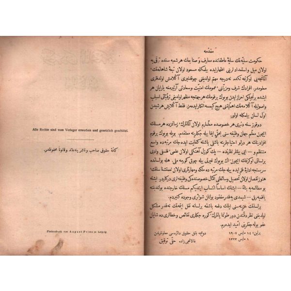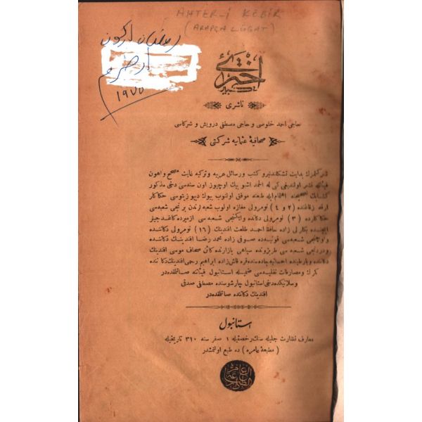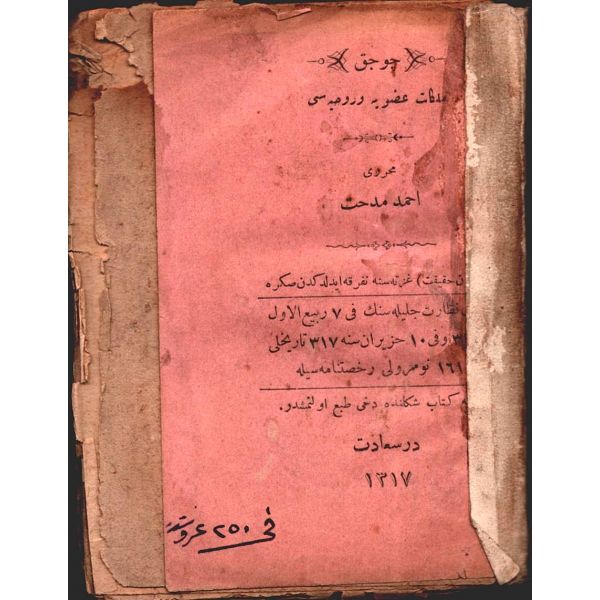"Tercüman-ı Hakikat gazetesinin tefrika suretiyle neşretdiği ecnebi lügatlari bu kere Midhat Efendi´den bi´l-istizan cem´ edilerek işbu Lügat-i Osmanî´ye zeylen neşrolundu."