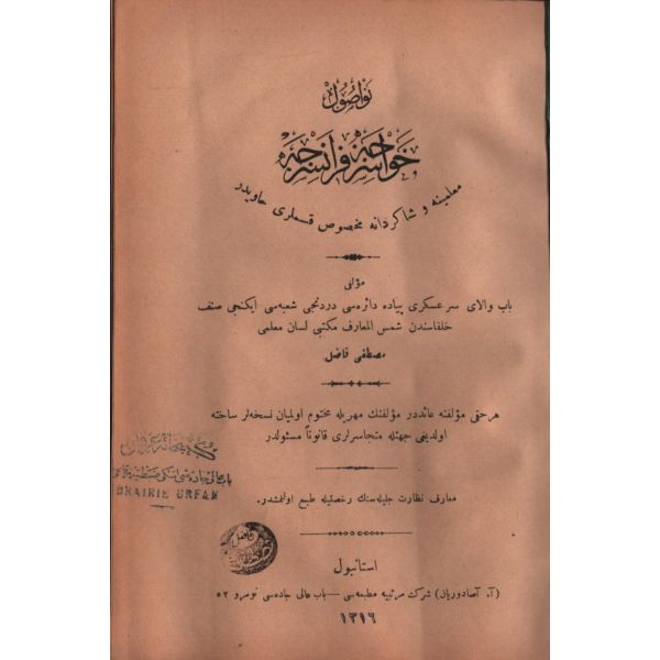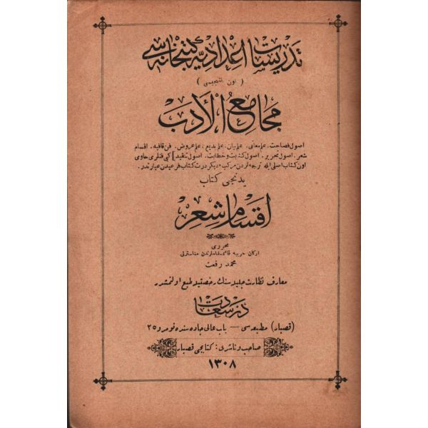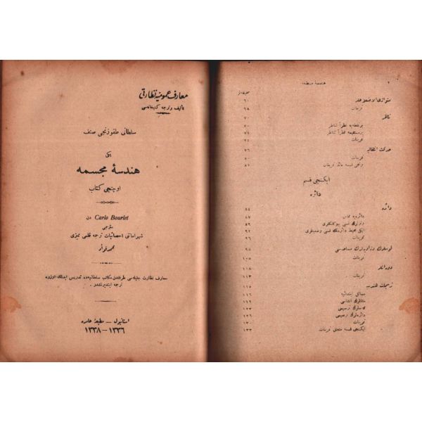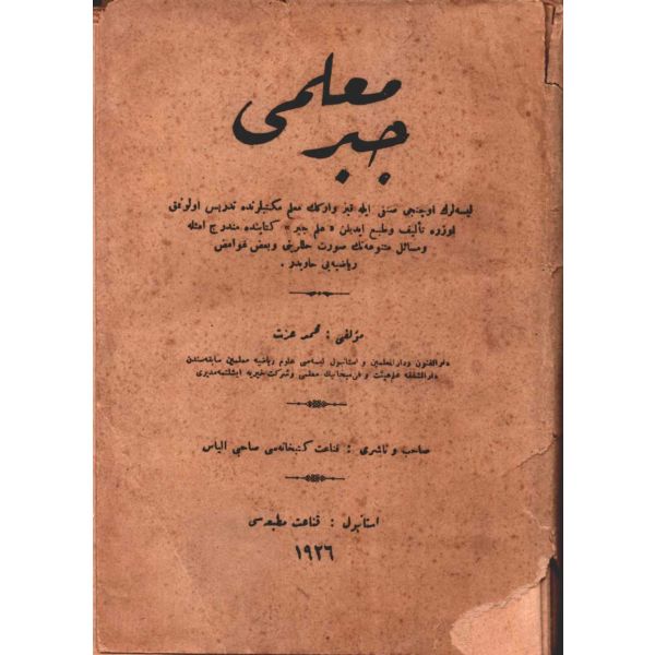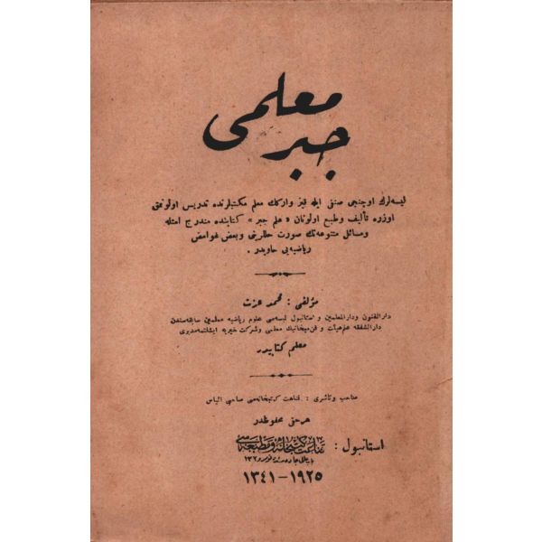 "Liselerin üçüncü sınıfı ile kız ve erkek muallim mekteblerinde tedris olunmak üzere telif ve tab´ edilen ´ilm-i cebir´ kitabında münderic emsile ve mesail-i mütenevvianın suret-i hallerini ve bazı gavamiz-i riyaziyyeyi havidir."