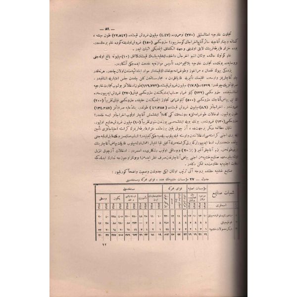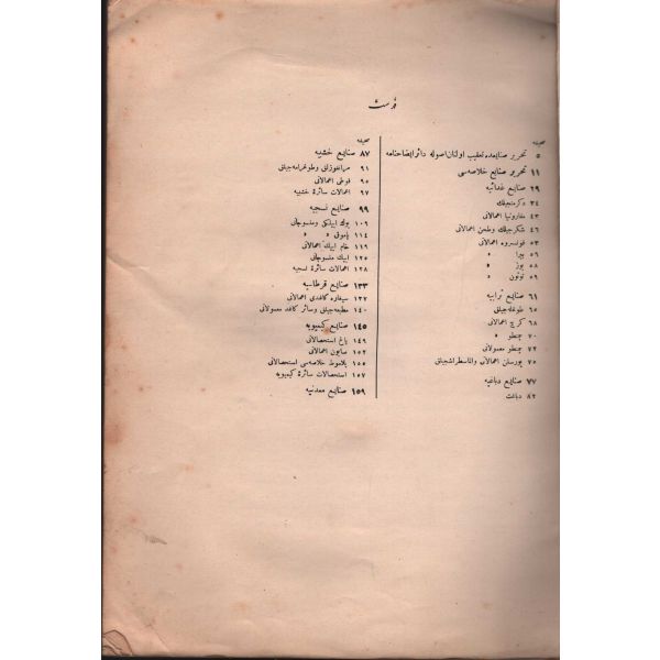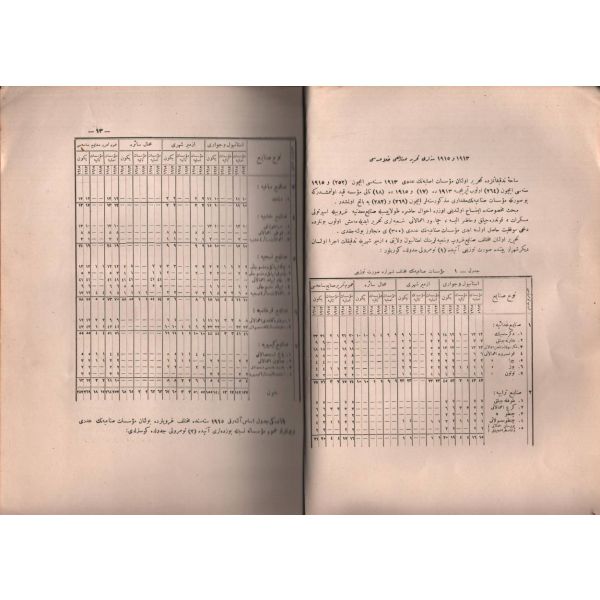"İstanbul vilayetiyle İzmir, Manisa, Bursa, İzmit, Karamürsel, Bandırma, Uşak şehirlerinde bulunan müessesat-ı sınaiyyenin bizzat mahallerinde icra olunan tedkikat üzerine ahval-i umumiyyesine, tesisat, müstahdemîn ve istihsalatını ve işbu istihsalatın ticaret-i hariciyye istatistiki ile mukayesesini muhtevidir."