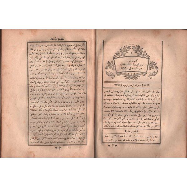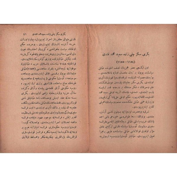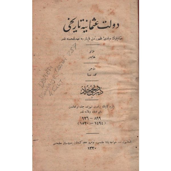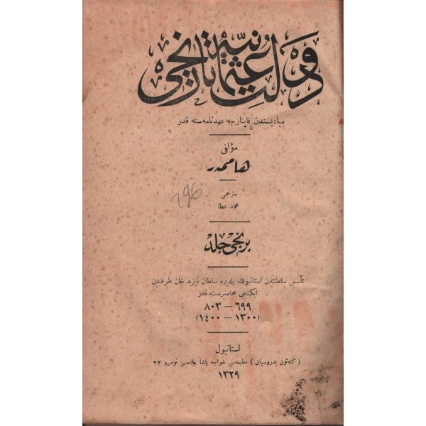 1. Cilt: Teessüs-i Saltanatdan İstanbul´un Yıldırım Sultan Bayezid Han Tarafından İkinci Muhasarasına Kadar (699-403, 1300-1400); 4. Cilt: Bayezid-i Sani´nin Biraderi Şehzâde Cem´in İrtihalinden Selim-i Evvel´in Vefatına Kadar (899-926, 1494-1520) / 4. cildin kapak ve sayfalarında kurt yeniği vardır.