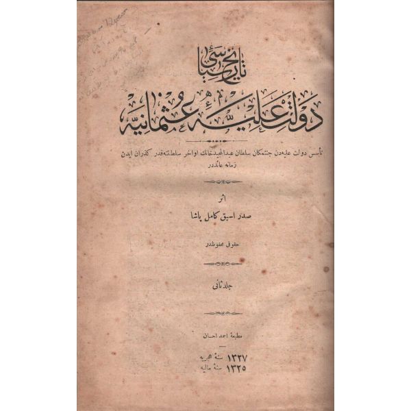 "Teessüs-i Devlet-i Aliyye´den Cennetmekân Sultan Abdülmecid Han´ın Evahir-i Saltanatına Kadar Güzerân Eden Zamana Aiddir." / Bir sayfasında çocuksu karalamalar mevcuttur.