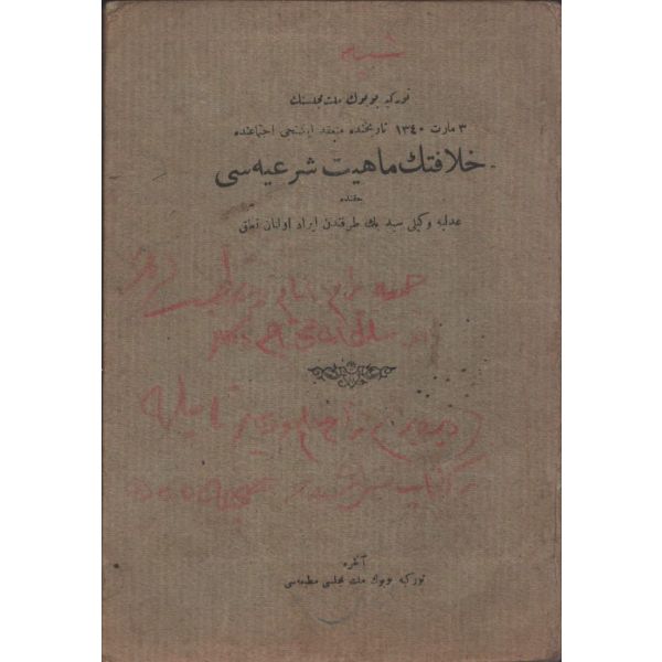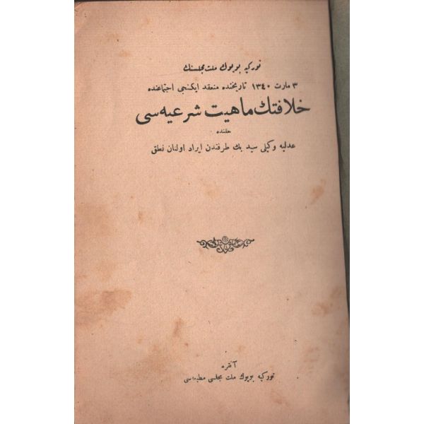 "Türkiye Büyük Millet Meclisinin 3 Mart 1340 Tarihinde Münakid İkinci İctimaında HİLAFETİN MAHİYET-İ ŞERİYESİ Hakkında Adliye Vekili Seyyid Bey Tarafından İrad Olunan Nutuk"